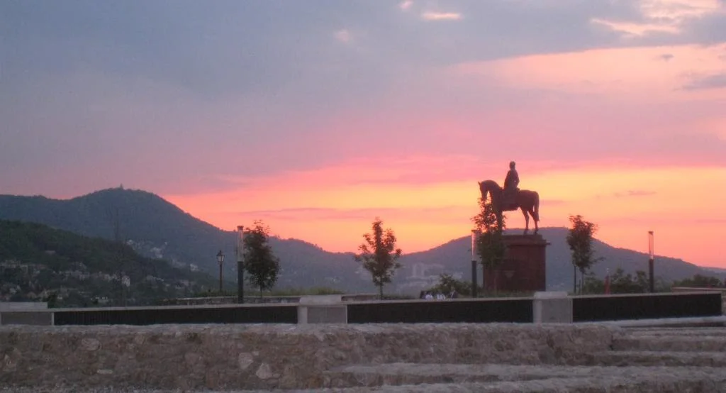 Sadly, the meeting lasted all of the afternoon, and it was pretty late before we could head out to see the city a little bit, and have dinner. As a result, I only got to see a very small bit of the city – not nearly enough. First, we walked across the “Chain Bridge” to the other side of the river. The Castle (I’m sure it has a name, but I’m not sure what it is…) is the former Palace, and sits up on the hill. We took a funicular (there’s tons of these things in Europe!) up to the top of the hill, at the front of the Castle. By this time, the sun was setting, and there was a lot of time to see much.