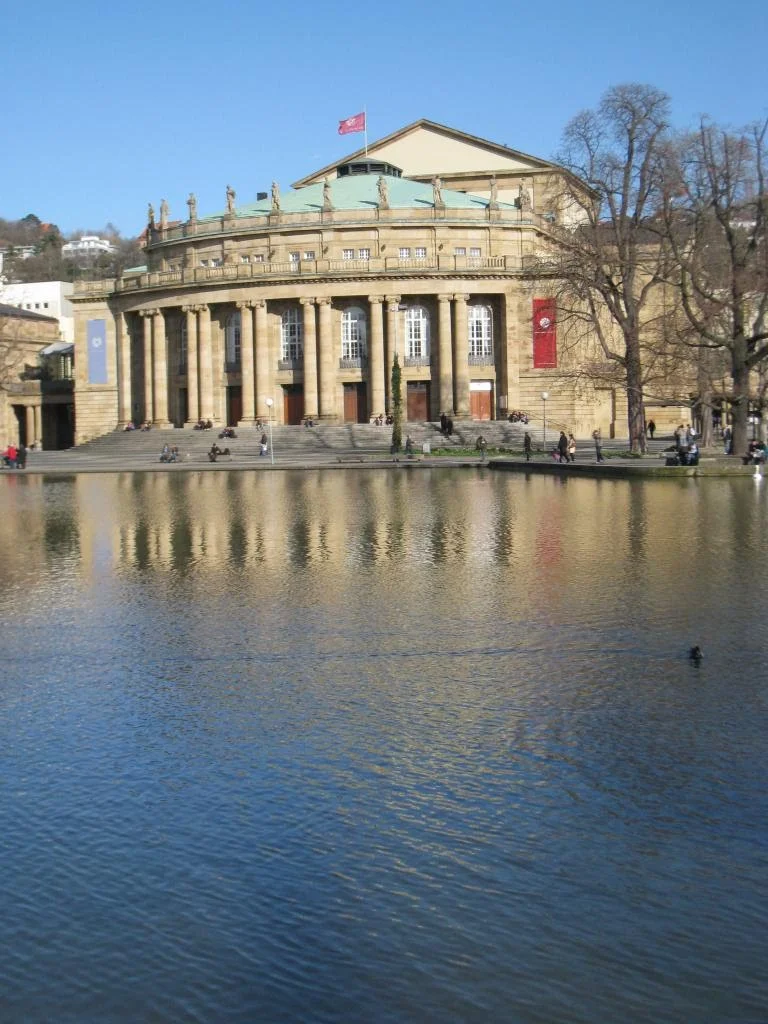 All in all, it was a really good exhibit, and worth the morning spent wandering around it. Mid afternoon, we headed back to the city center. We headed for the main central park, and spent a bit of time in the beer garden. Come on, I had to experience authentic German culture… It was a beautiful afternoon, and the dark wheat beer went down nicely. We walked back to the train station, through the park. Along the way I had an opportunity to check out the highlights of Stuttgart, including the Opera House, the city hall and the main shopping district. As it was such a nice day, the central areas were pretty busy with people, and there was a good crowd in the town square.