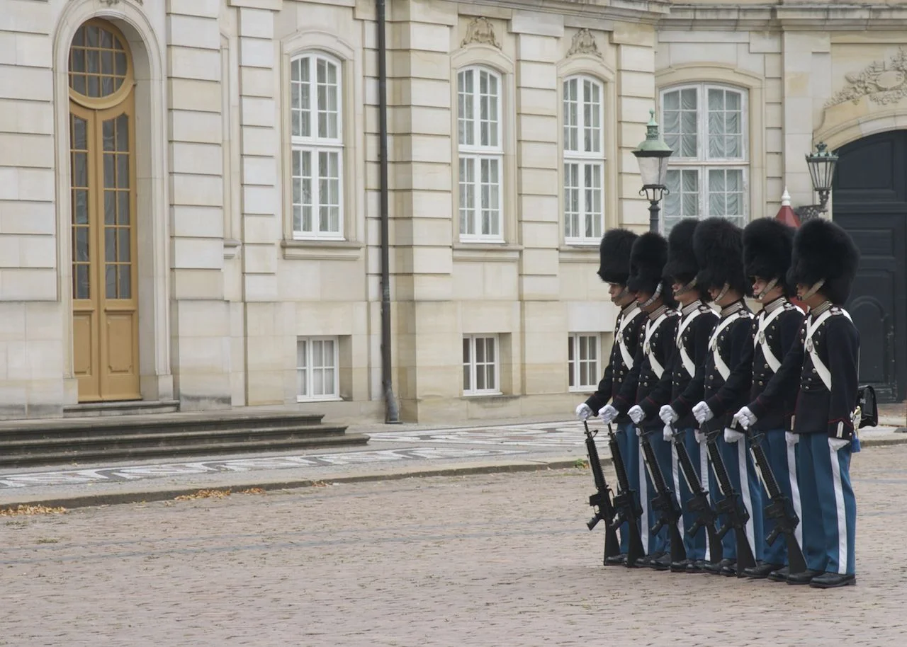 It was early afternoon by the time we were done, so we had an hour’s break for lunch at a local restaurant. The food was good, but soon we were on our way. The next stop was a functioning castle – the summer home for the Danish royalty. It seems that the Danes still have a very strong relationship with their Queen, and Fredensborg Palace is her summer home (kind of like Windsor Castle for the British royalty). We only stopped here for about 20 minutes, as you could only look from the outside. But the highlight was an opportunity to see the changing of the guard.