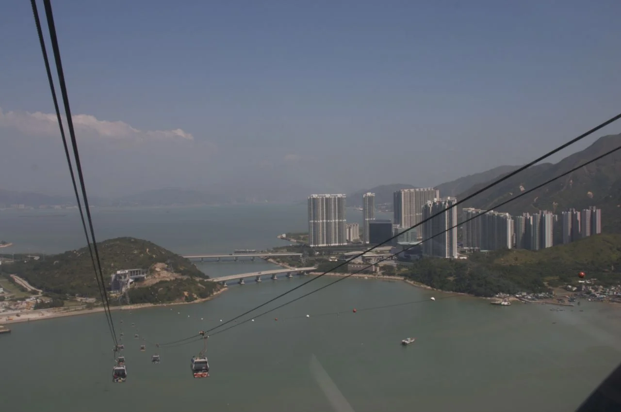 Monday I was on my own. Sel has to work during the week while I’m here, leaving me to explore on my own during the day, and then meeting up at night. On my first day, I decided to head out of the city. My first stop was Hong Kong Disneyland. It was on my way to my actual destination, so I thought I’d stop in and take a look. Frankly, I’m not sure why I bothered really. I’ve never been to any of the US-based resorts, but I’m assuming this was a copy. It had all the usual bits – the Castle Tomorrowland, Main Street USA. I got bored with it after about 45 minutes – without a little one in tow, there wasn’t a lot to do. I did check out a pretty cool animation exhibit, and that was it for me. The metro line out to Hong Kong Disneyland was pretty cool. They have their own trains – the windows are shaped like Mickey Mouse’s’ head. I hopped back on the Mickey train and headed out to the main metro line. From there I continued on to the Tung Chung metro stop. From there I got on a cool cable car that was to take me out to Lantau Island.