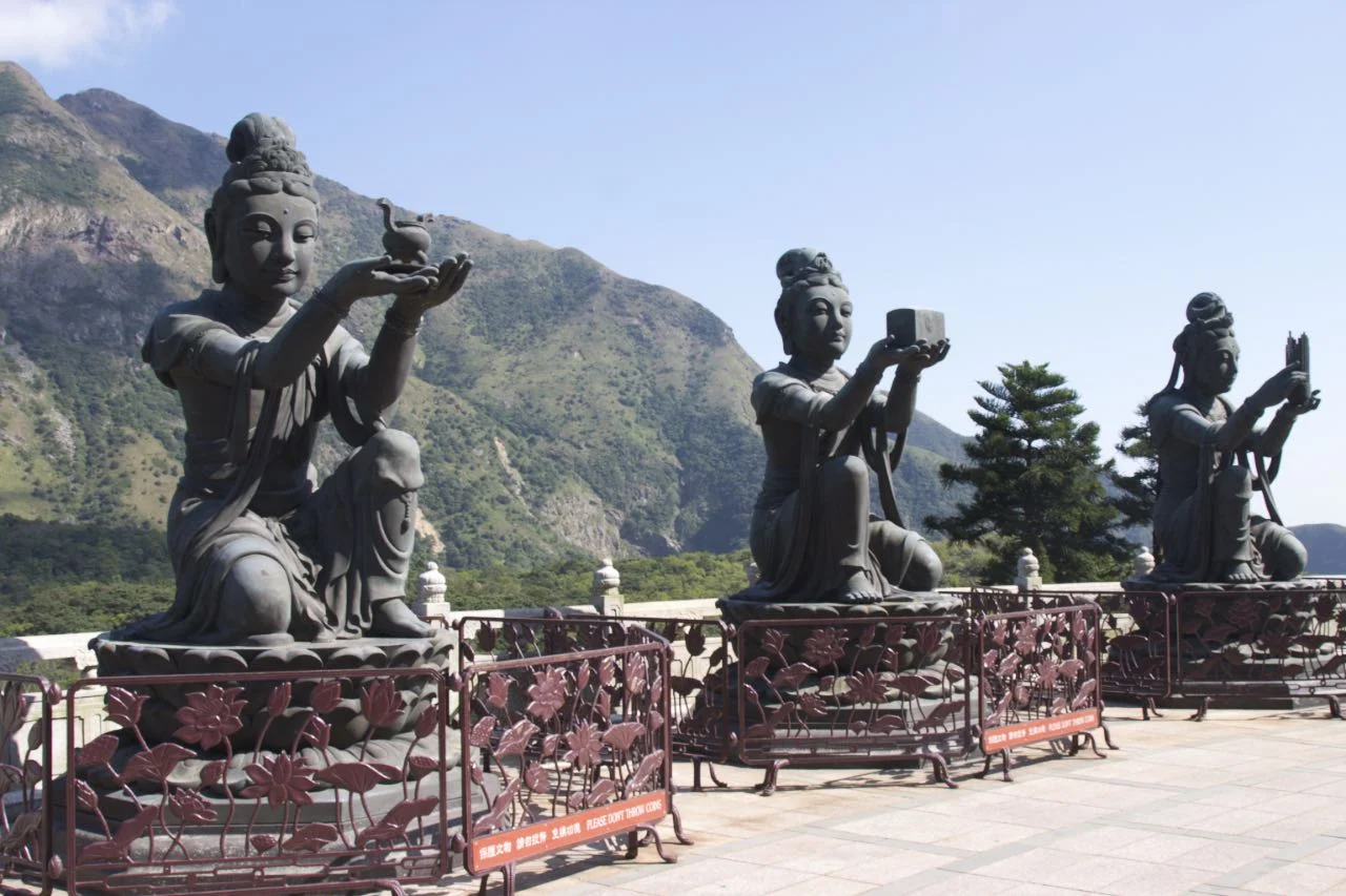 The main attraction at Ngong Ping is the Po Lin Monastery. The Po Lin Monastery has the distinction of having the largest Buddha statue. The Buddha sits atop 268 stairs, and from the massive statue you get excellent views over the island and the surrounding islands.