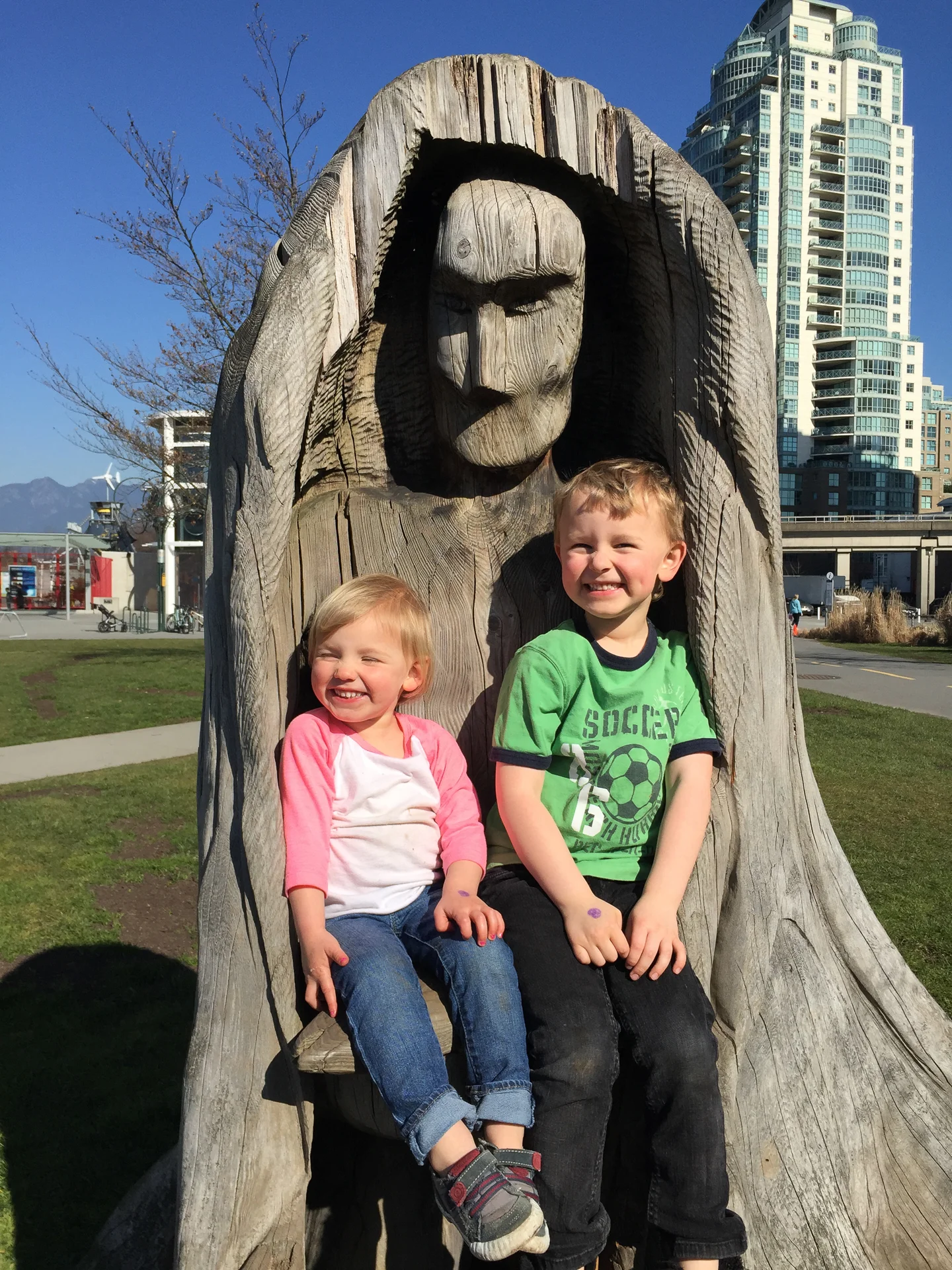 It's been a pretty amazing spring (the winter was pretty mild as well - especially compared to further east, where you guys got killed this winter), and we've had a lot of warm, sunny days to enjoy already. It probably means that we're going to have an awful summer, but we'll cross that bridge when we come to it. Tammy (Justine's sister-in-law) was taking Ethan and Addison to Science World on this beautiful Saturday afternoon, so Justine and I ran out along the seawall to meet up with them, and hang out for a little bit. It's always good to see the kiddies.