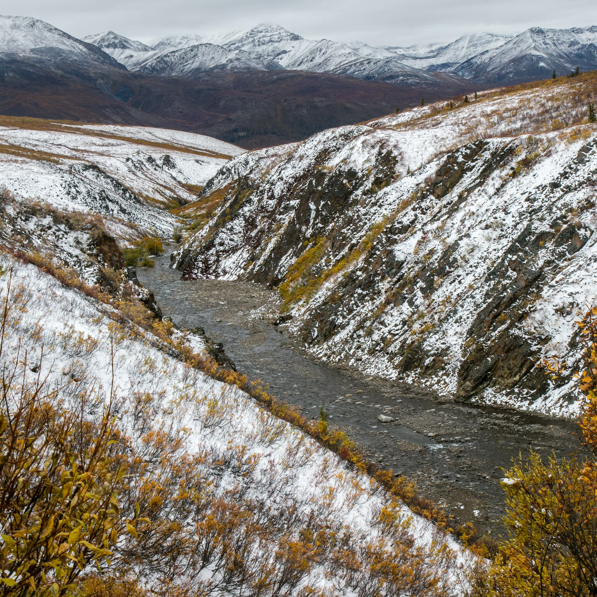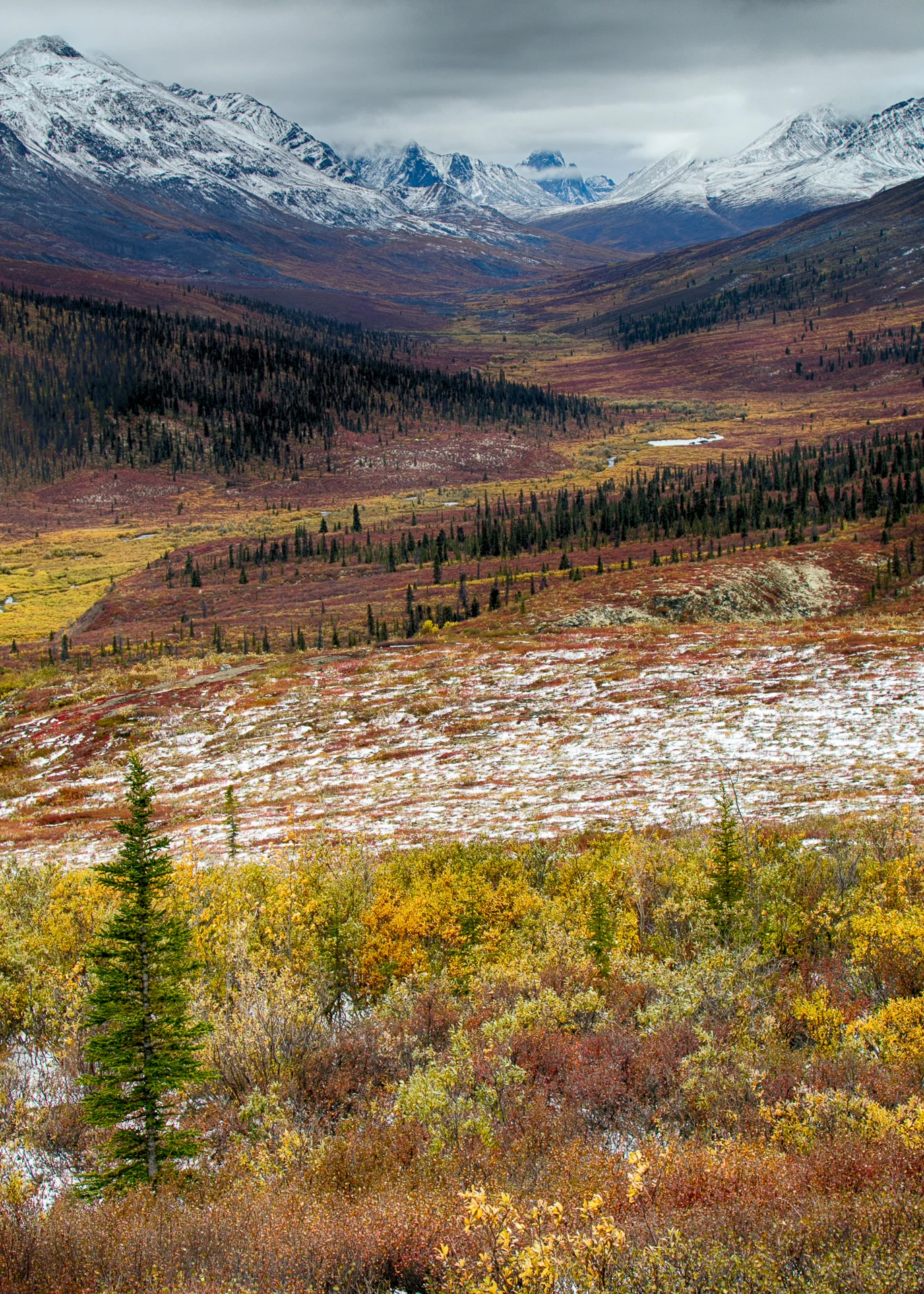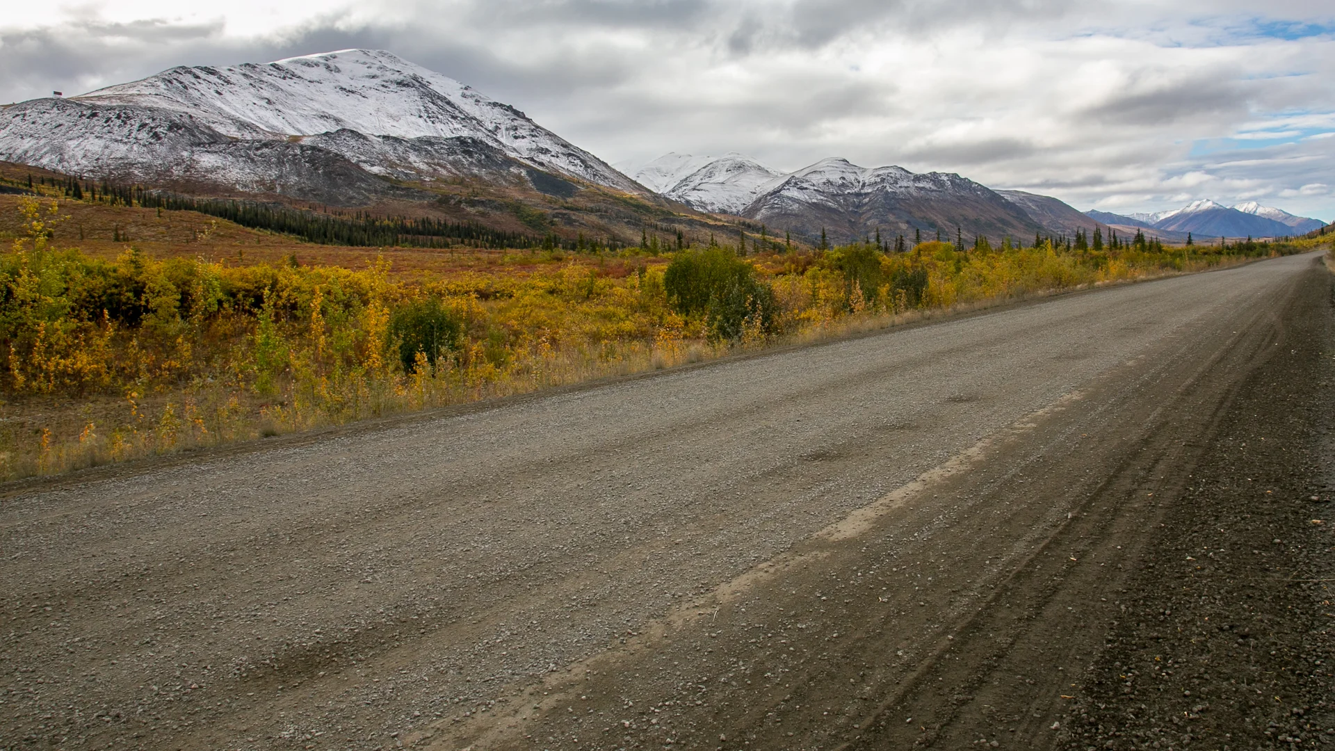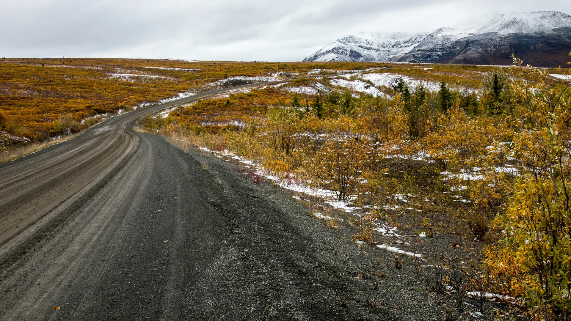 The Dempster cuts through the fall colours on the tundra, seemingly going on forever.