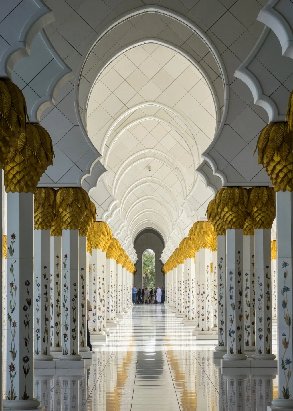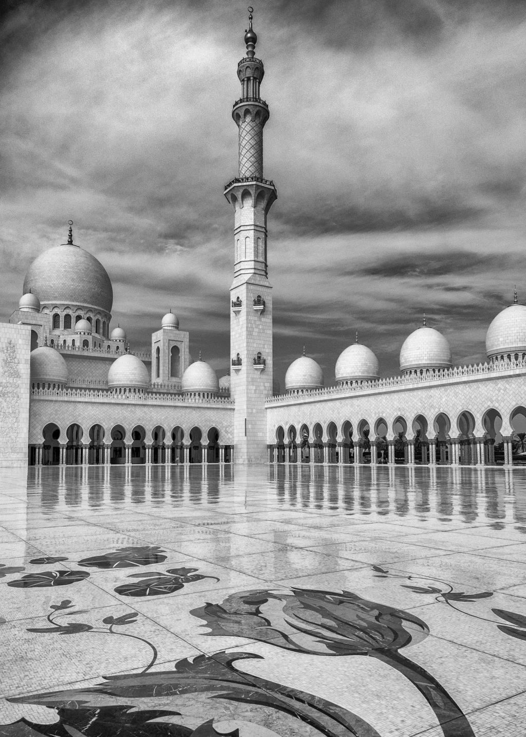 Once again, we had a pretty long wait for a taxi outside the mall, but eventually we were off to the mosque. We had heard amazing things about the mosque, but words just can't describe this place. It is massive on a scale that you just can't comprehend. It can support prayer for 40,000 people; there are four minarets that are 102 meters tall; there are 82 domes and 1,096 pillars. The entire structure is done up in white marble, and throughout the marble is inlaid with semiprecious stone forming amazing floral designs. It just incredibly beautiful.