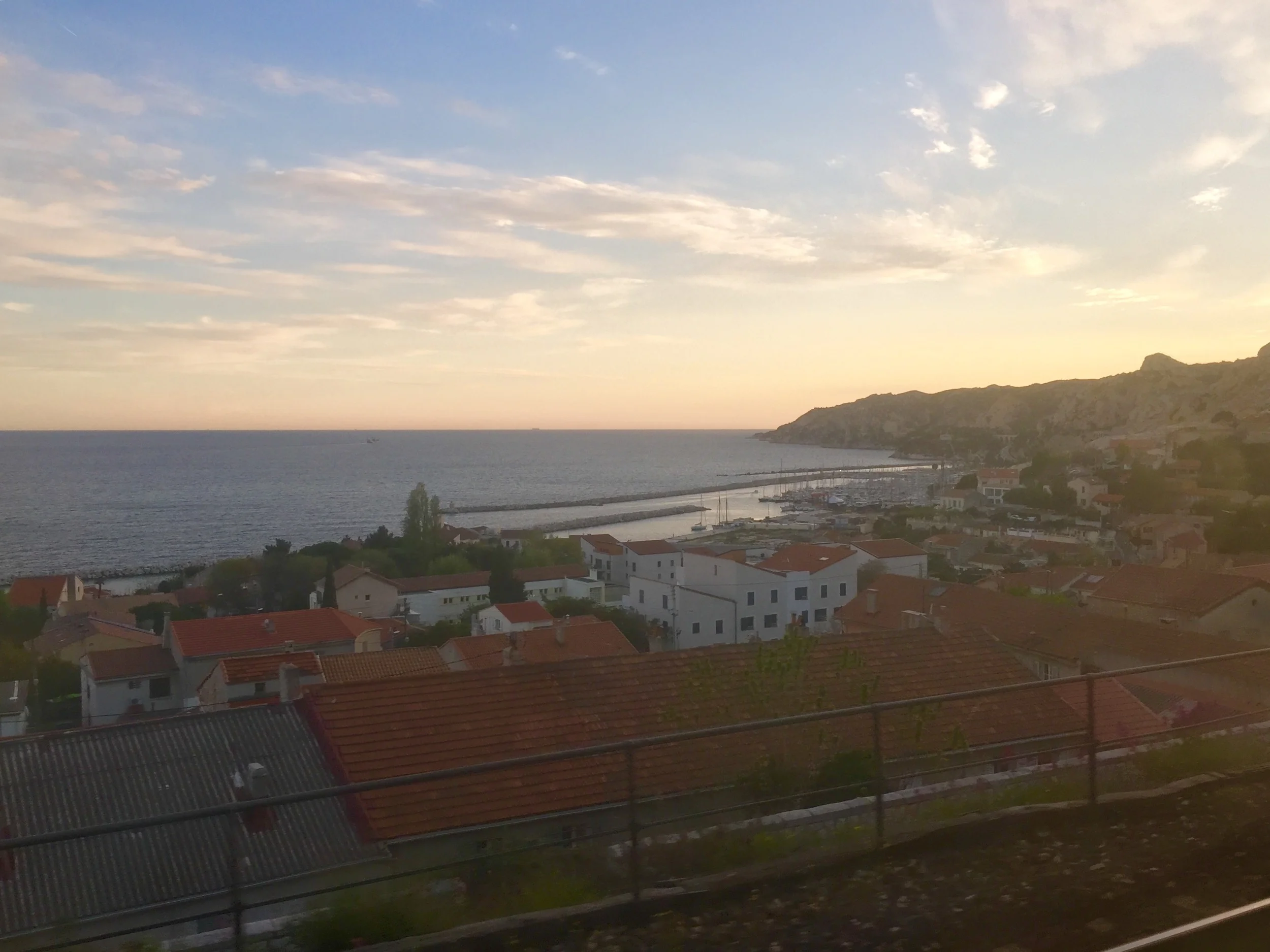 Just outside Marseilles, from the train window as the sun set.