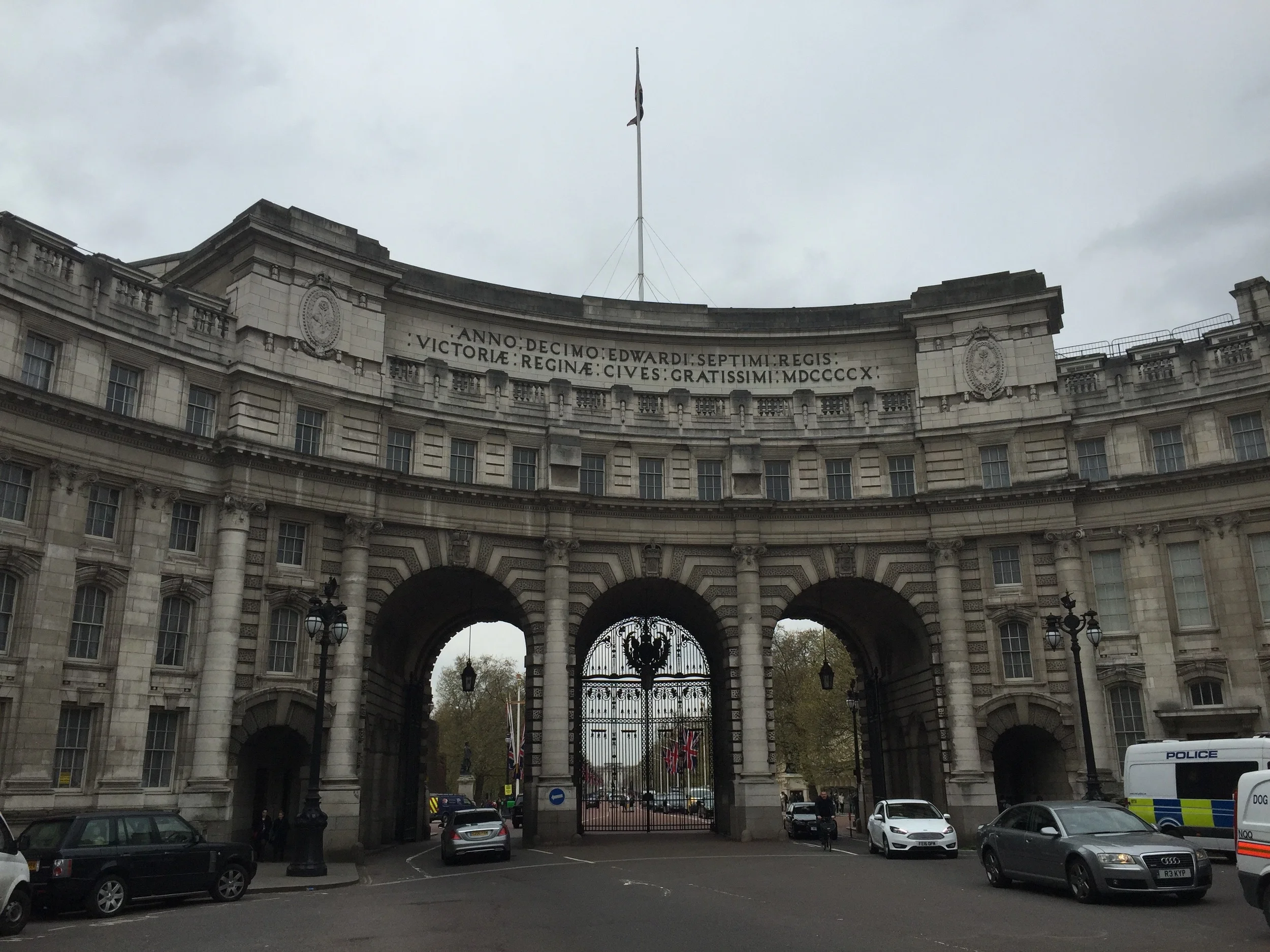 Admiralty Arch. An Edwardian landmark building, formerly government offices, featuring archway entrance to the Mall.