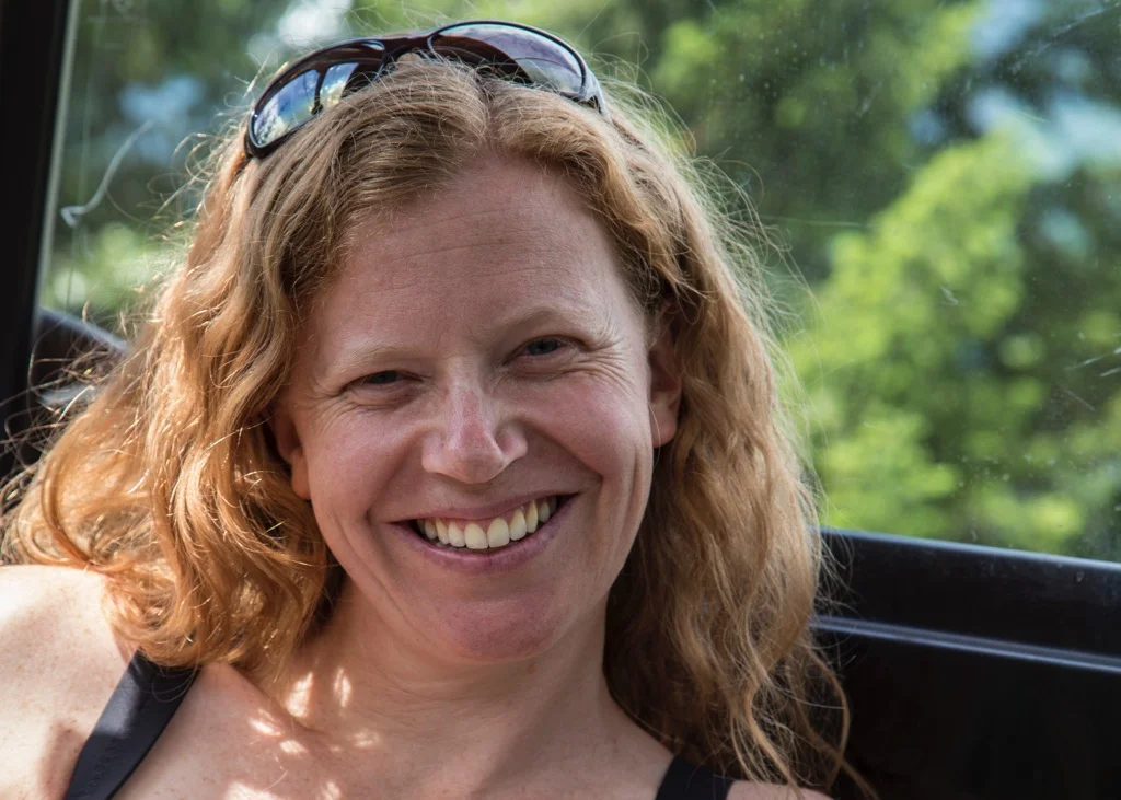 Justine on the gondola, on the way up to Whistler Roundhouse