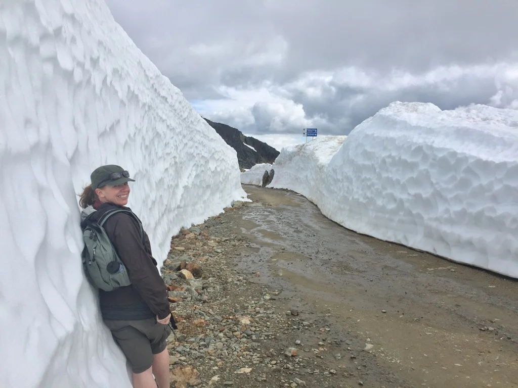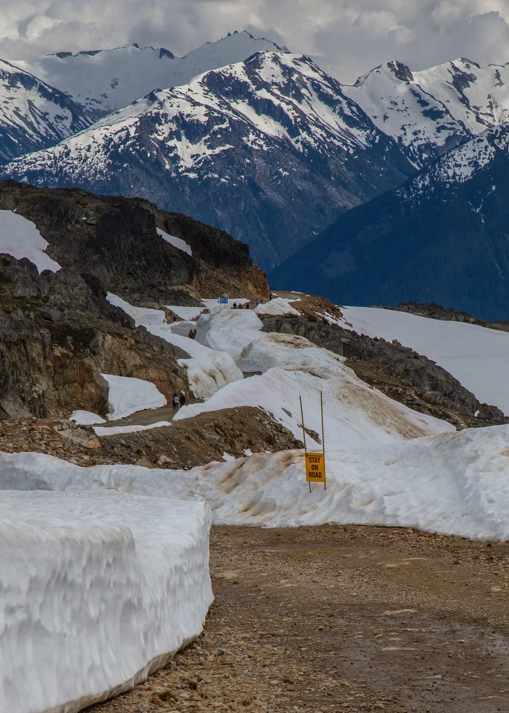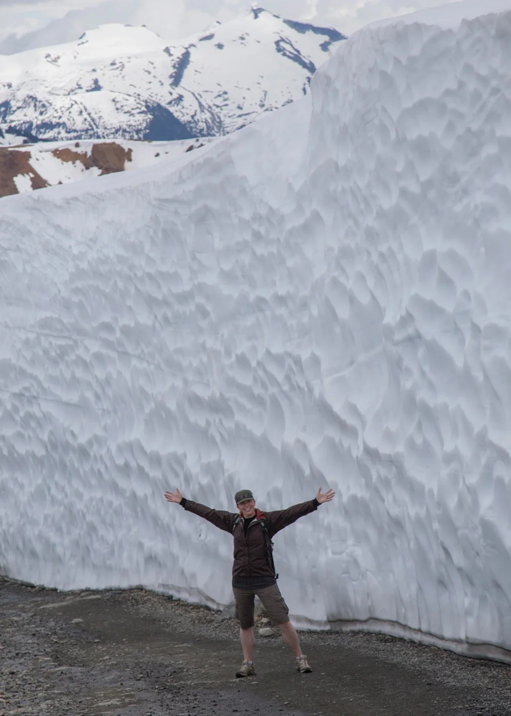 The walk itself was pretty easy. It is the access road that they dig out at the end of the season to get access to the peak, but there's a lot of snow! It was super cool walking down though the massive canyons. Eventually they started to shrink, and we got back to Roundhouse where the snow was pretty much gone.