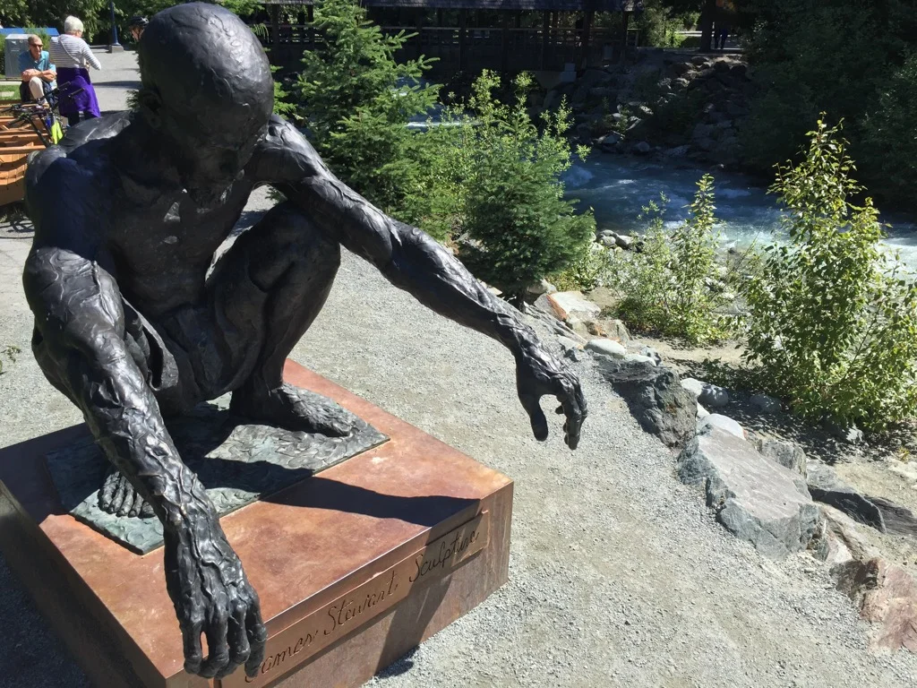 We got up at a reasonable time on Sunday morning. Graham headed out a little before us to head to the bike park. We were staying on the trails around the village, so we didn't need to rush. We drove over to the village, then headed out on our bikes. We made a quick stop to check out the sculpture that our friend James has set-up along the river, between the main and upper villages.
