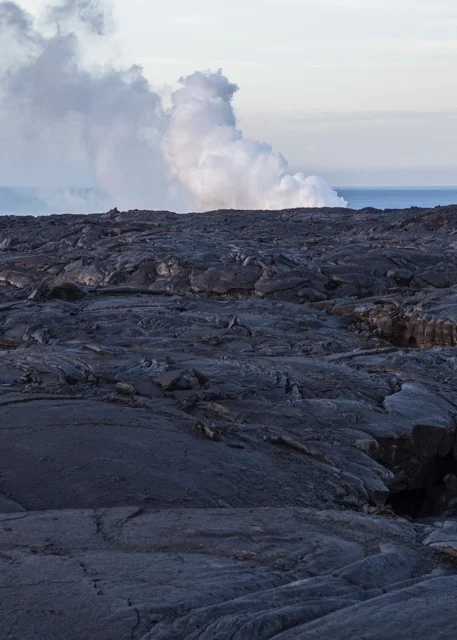 Looking back, you could see where the lava was flowing into the ocean, and the huge plume of smoke. It’s hard to explain how crazy it is being out on the active flows. The heat is unreal, and the way the lava come out of the ground is just completely unpredictable. All of a sudden there will be some odd noise - hissing, crack or pop - and then a new lava flow would show.