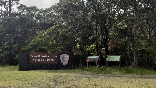 One of the interesting thing about the Park is that there are a set of old cabins in one of the Park's campgrounds the you can rent out. Not the most luxurious of accommodations, but lots of character (and relatively inexpensive). We had to check in at Volcano House, which also gave us an opportunity to stop in at the park's Kilauea Center to see what was going on. It was a good stop, as they pointed us to a local General Store at the nearby military base, and also provided some good tips on viewing the crater and an update on the volcano's activity. It was all looking very promising.