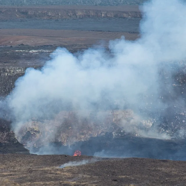 From the viewing area at the Jaggar Museum, you could clearly see lava in the Kilauea volcano crater
