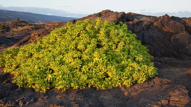 Life starting to take hold on one of the lava fields from a 1970s eruption