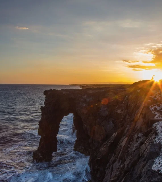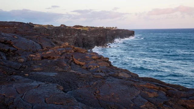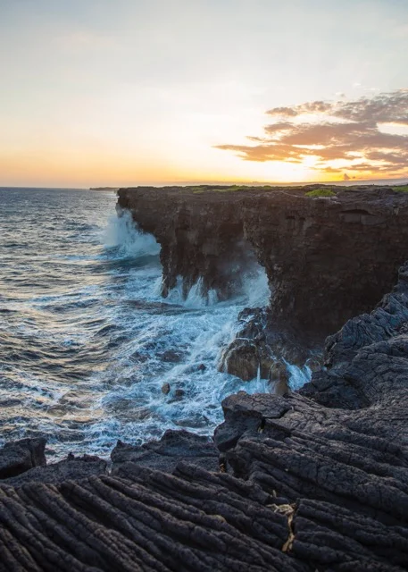 We got to the parking lot at the end of the road, and were surprised to find it still very busy. It seems that people were walking out to where the active lava flow was entering the ocean, despite the fact that daylight was going to end soon. We weren't that ambitious, so we checked out the sea arch and watched the sun set, before taking the drive back up to the lodge.