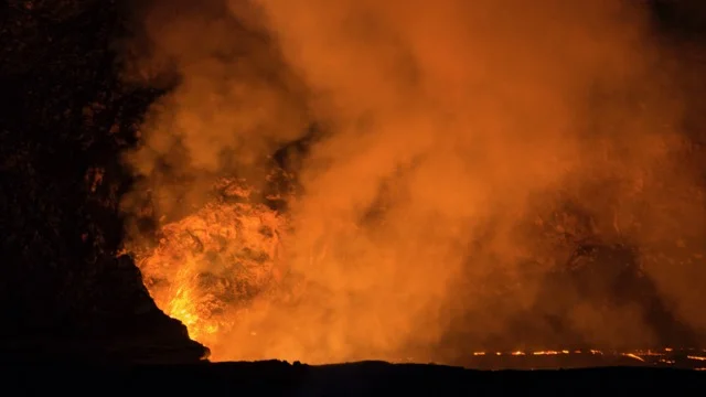 If you watched long enough, lava flares appeared in different places along the lava lake