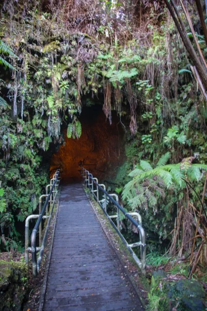 We started the hike at one of the park's signature attractions, the Thurston Lava Tube. This huge cave lets you walk through an old lava tube from the eruption. We had been in some lava tubes in Oregon, and they are always impressive. Normally, this site is incredibly busy, but as we were starting early we pretty much had it to ourselves.