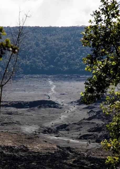 Eventually, the path started to descend into the crater, and we got to walk across the entire width of the crater floor, right on the old lava field. It is a surreal experience.