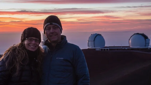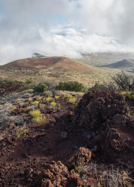 Mauna Kea is 14,000' tall, so altitude sickness is a real issue. The visitor center is at 9,000', and the plan was to stop there for an hour to acclimatize, and try and get used to the altitude. We had an hour to kill, so Justine and I did a short hike up to a look out point, to take in the view. The view was pretty amazing, and as we were quite high, the clouds kept blowing in and out, at times leaving us completely encased in clouds. Soon enough it was time to head up to the top!