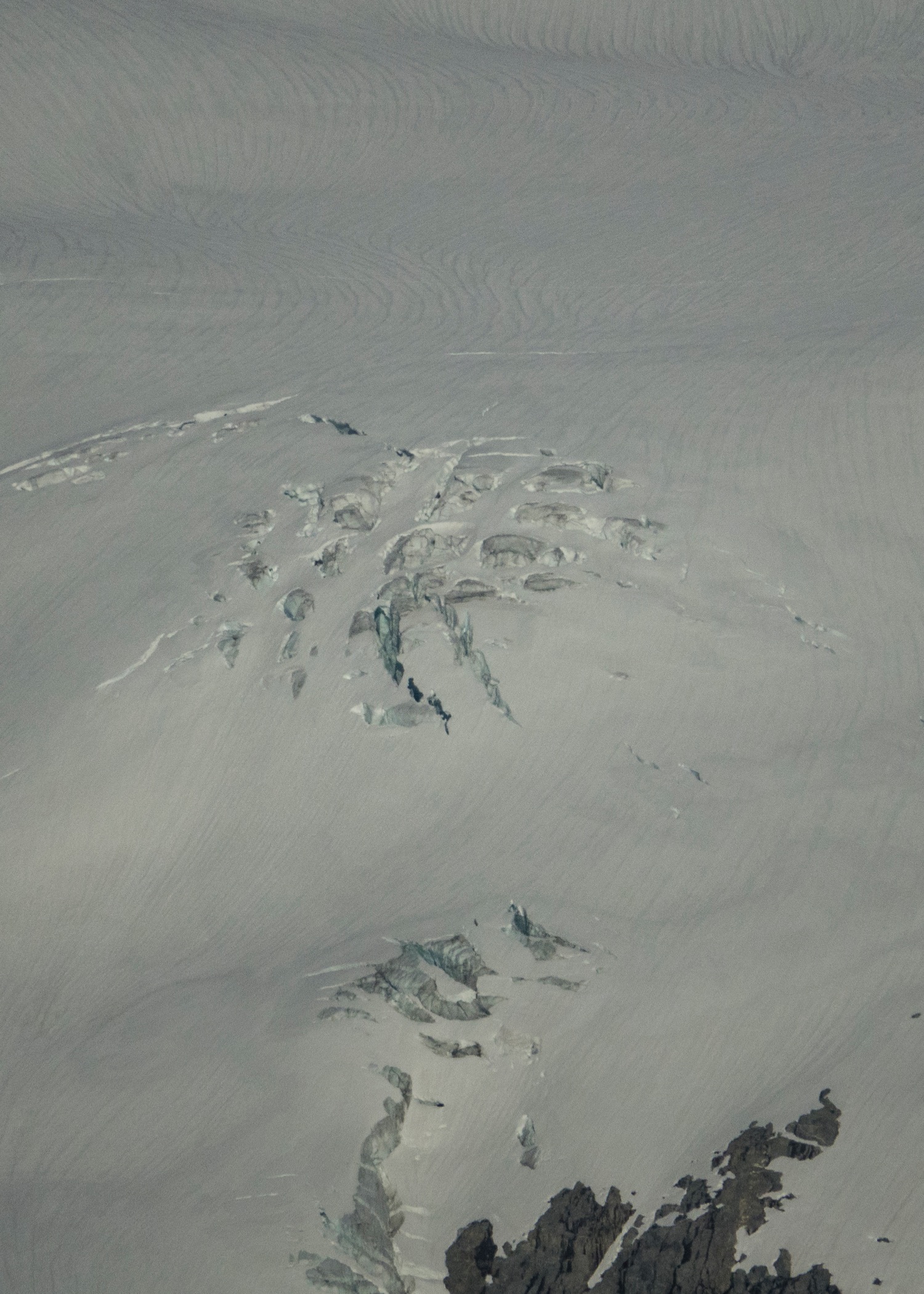 A view across the lake to the glaciers on the other side. Lots of cracks and crevices forming as the snow melts.