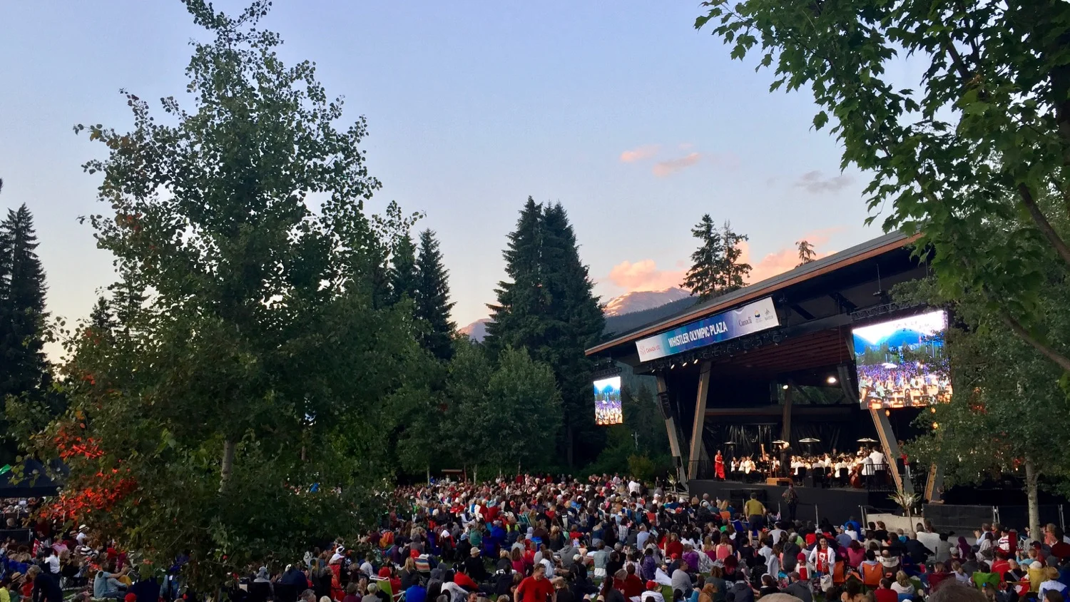 Eventually they wrapped up, and we headed back to the house to get cleaned up, relax for a bit and get changed for the evening. We had a reservation in the Village for dinner, and had a nice meal as the sun started to disappear on the evening. One of the events happening in the Village was the Vancouver Symphony Orchestra playing a set in the main plaza. They came on about half way through dinner for us, so we wandered down that way and watched for a little while.