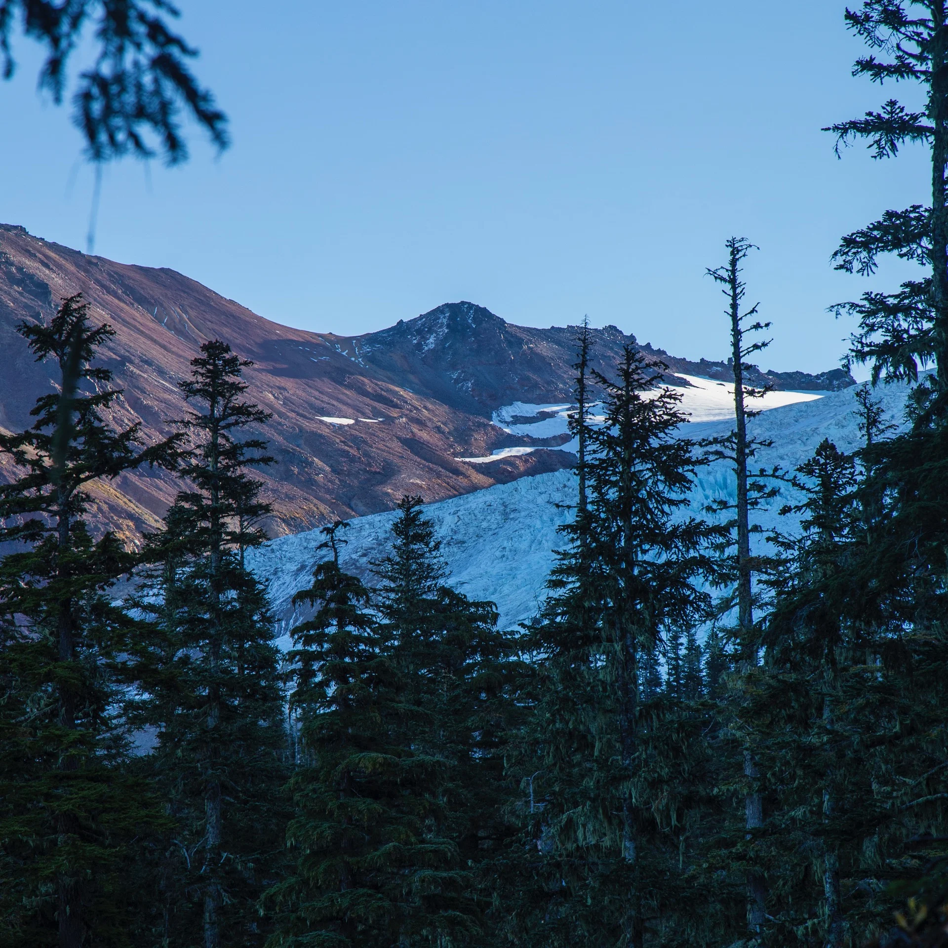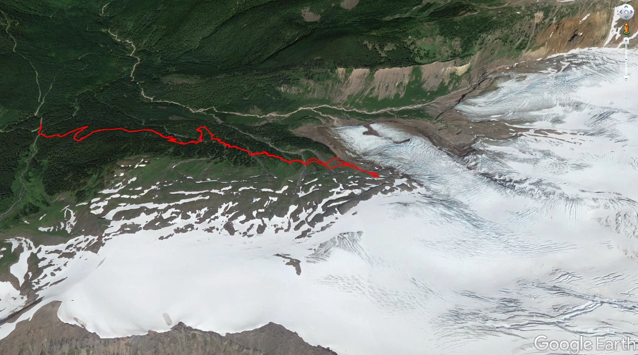 There’s still quite a bit of glacier left on this side of the mountain, protected from the sun.