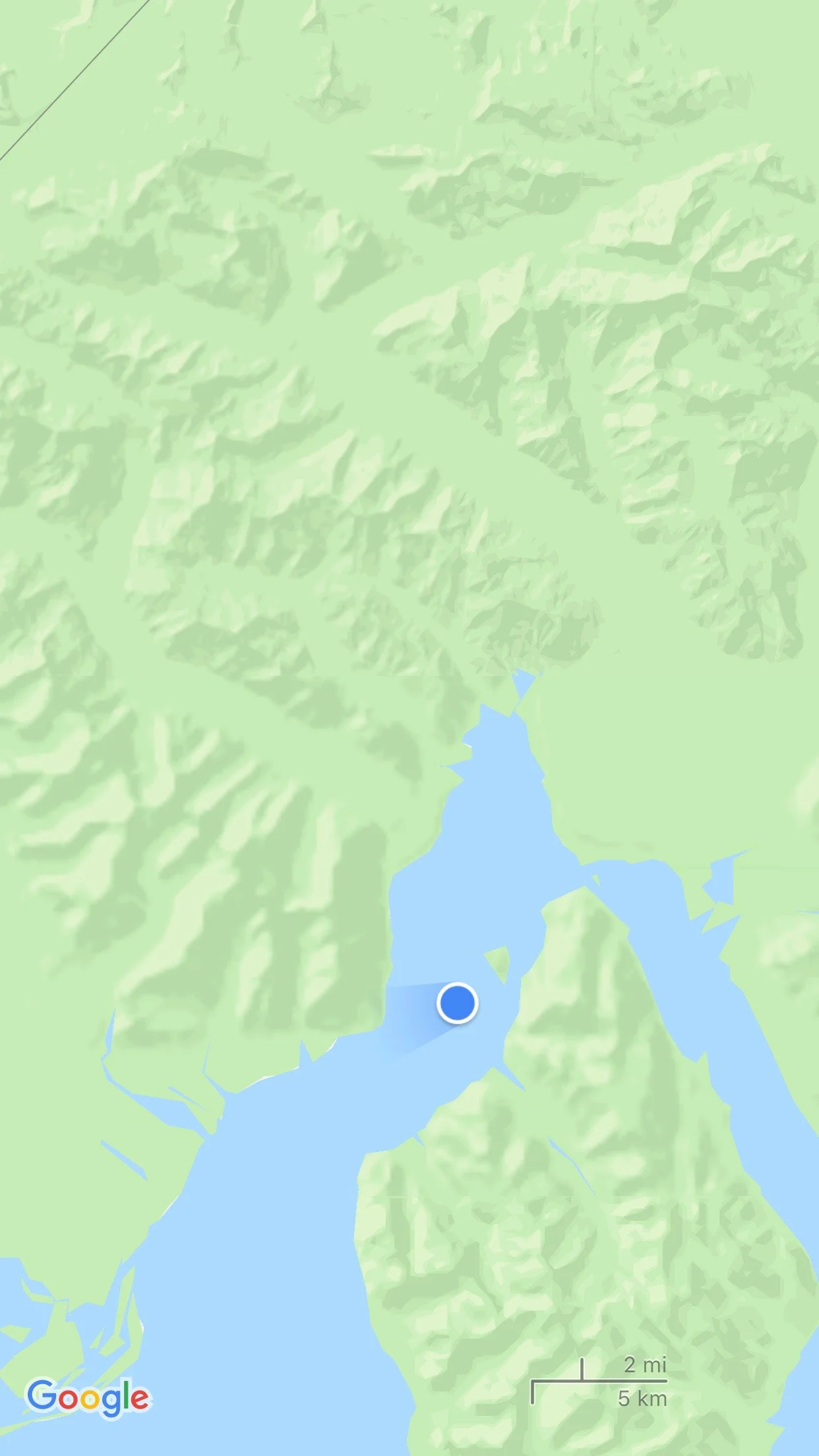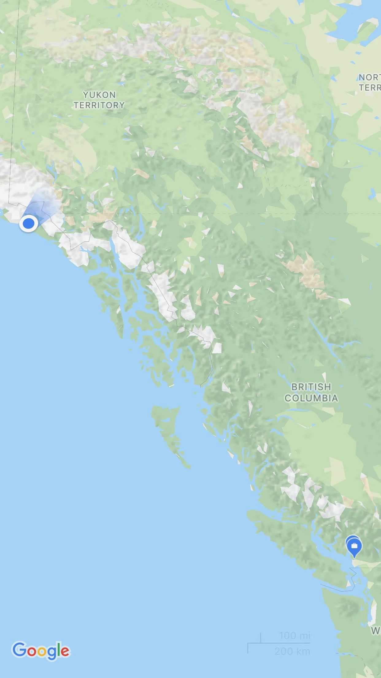 Russell Fjord is the "arm" up and to the right of the blue dot.