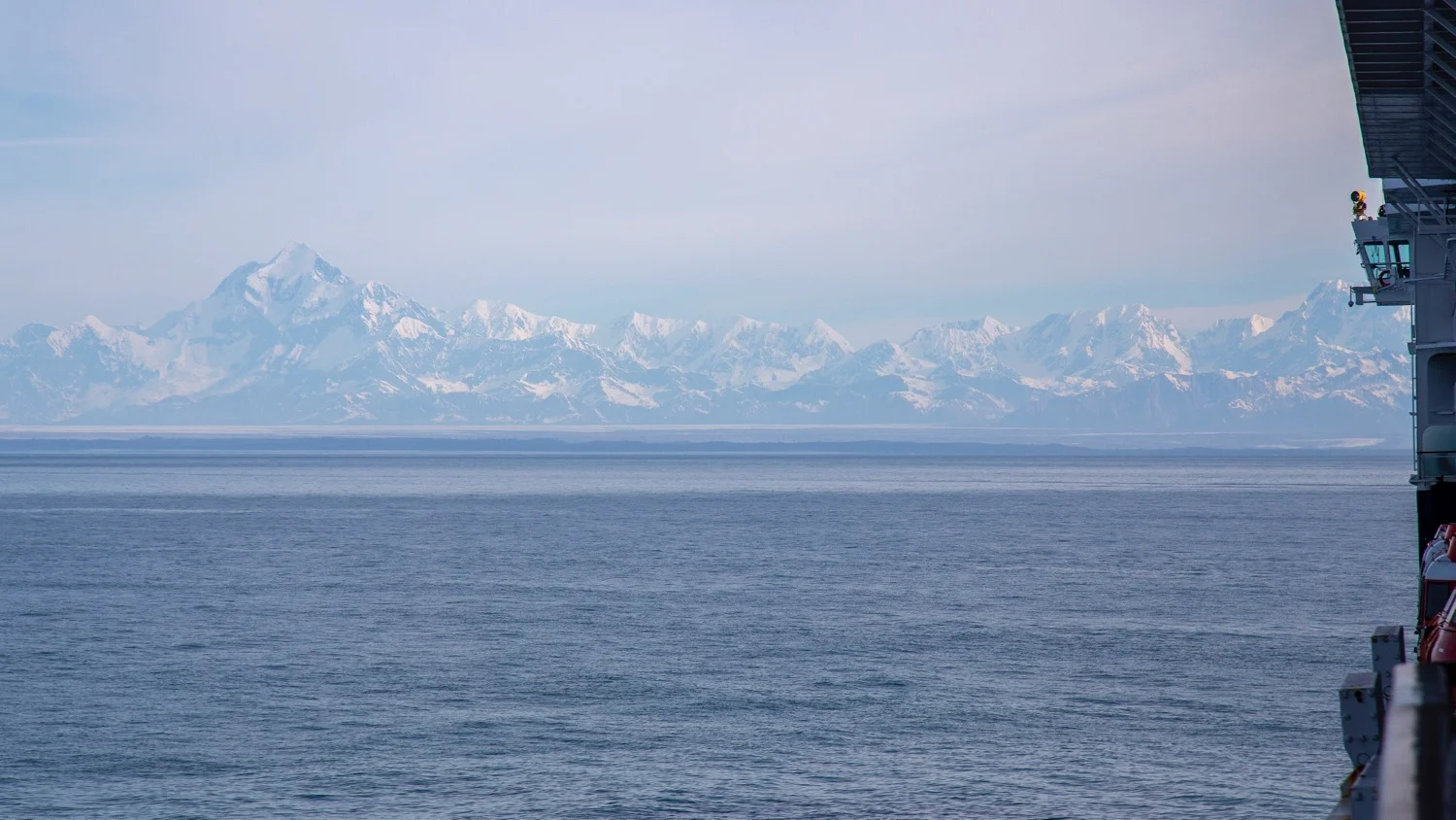 From our balcony, we had a view of the mountain range leading into the glacier, with Mount Saint Elias looming over all of it. As we got closer into the inlet, we had more and more spectacular views of the mountain.