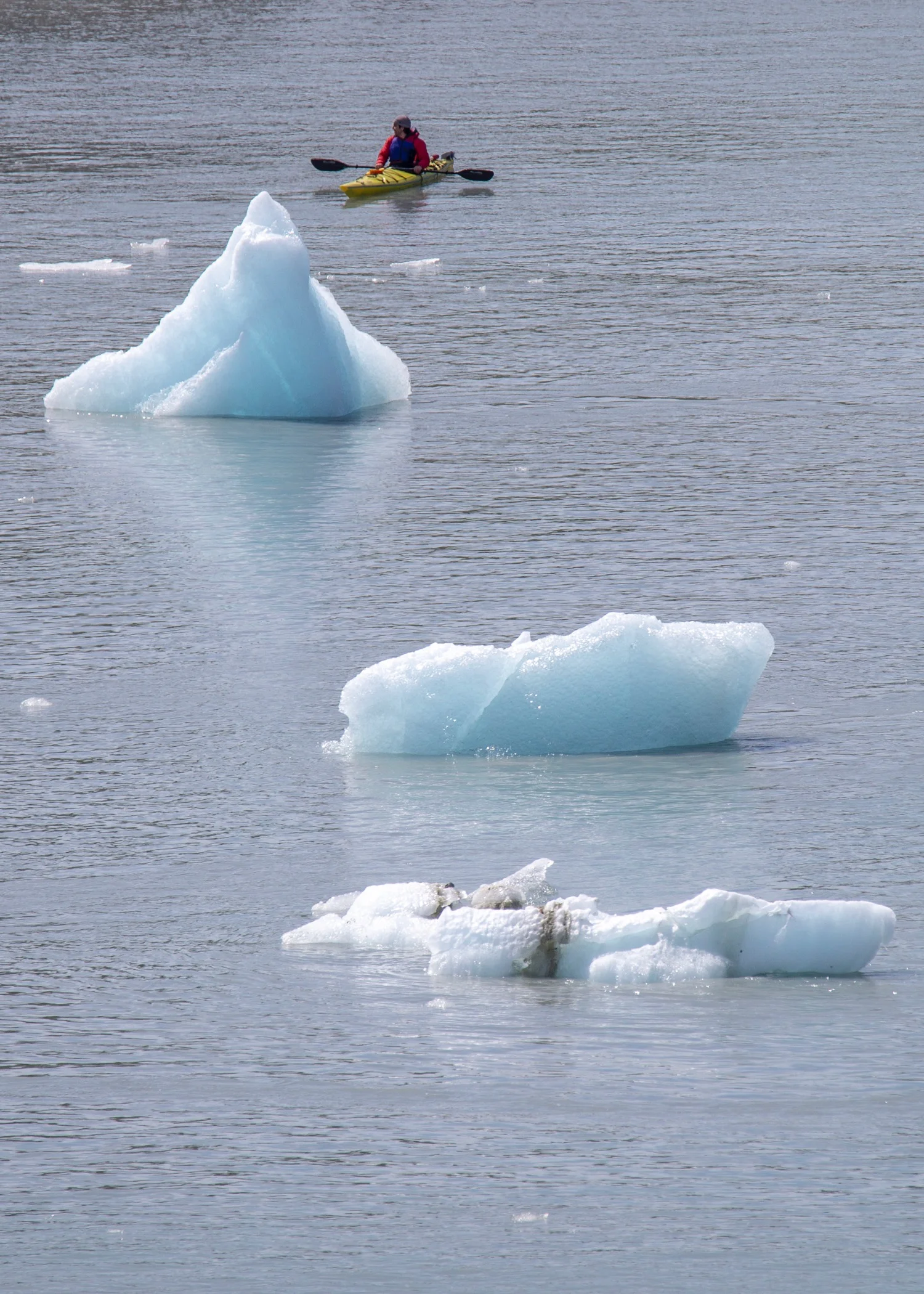 As mentioned, we weren't alone in the bay by any means. After the ship had done it's rotations, we started to head back out and towards our next port of call in Juneau. As we left, our side of the ship was quite close to shore, and we had a chance to scout the shoreline for anything interesting - they claimed you might see bears. We didn't, but there were some kayakers drifting among the pieces of ice along the shore of one of the local islands. We still have no idea how they got there - I have to assume one of the smaller boats we saw must have dropped them off.