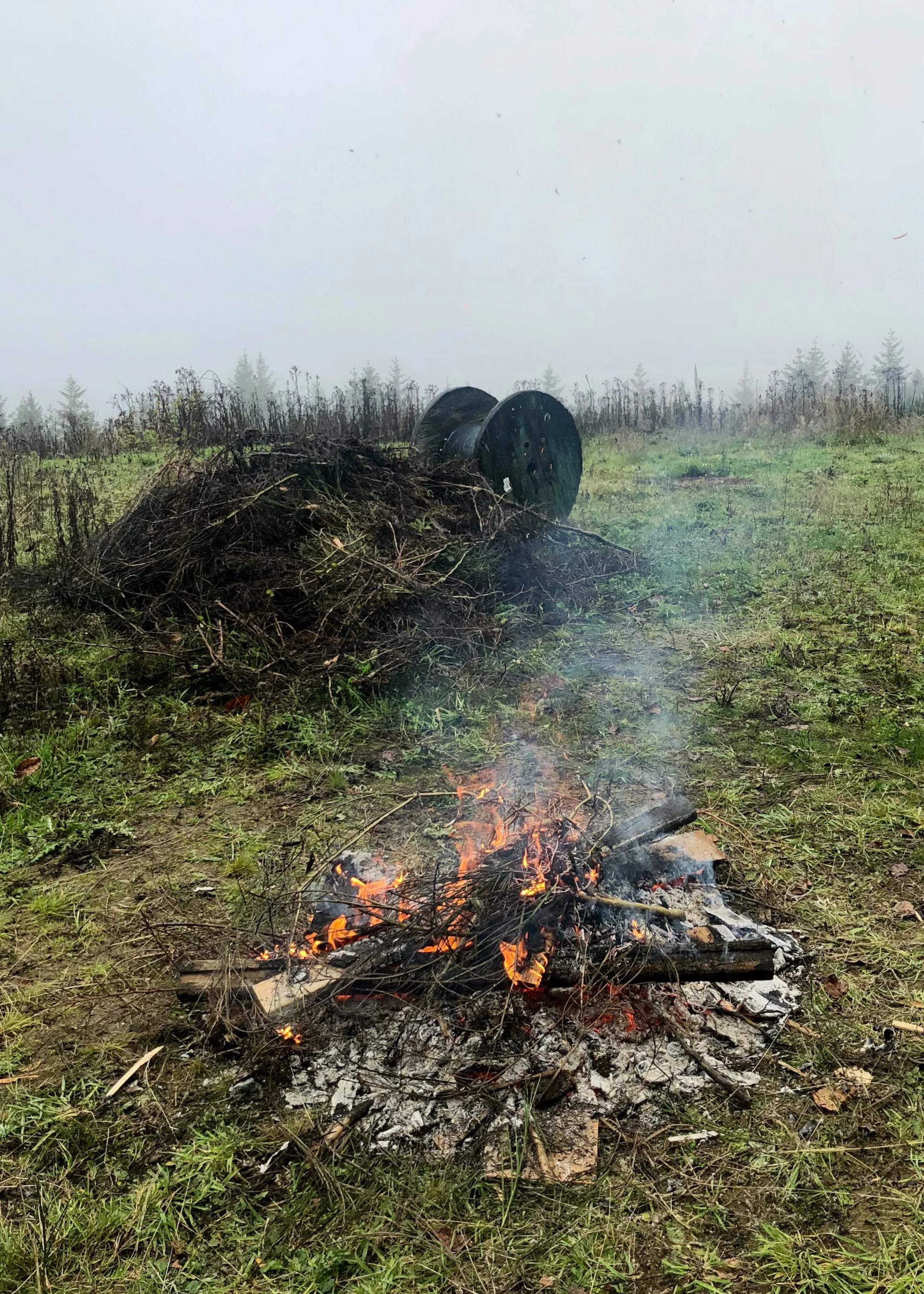 After our little walk, it was back up to the property to continue our clean up. we spent quite a few hours building up a fire and burning through some of the excess material we’ve been piling up over the past year. It was very satisfying to watch the broom go up in flames, and start to get a bit ahead of something.