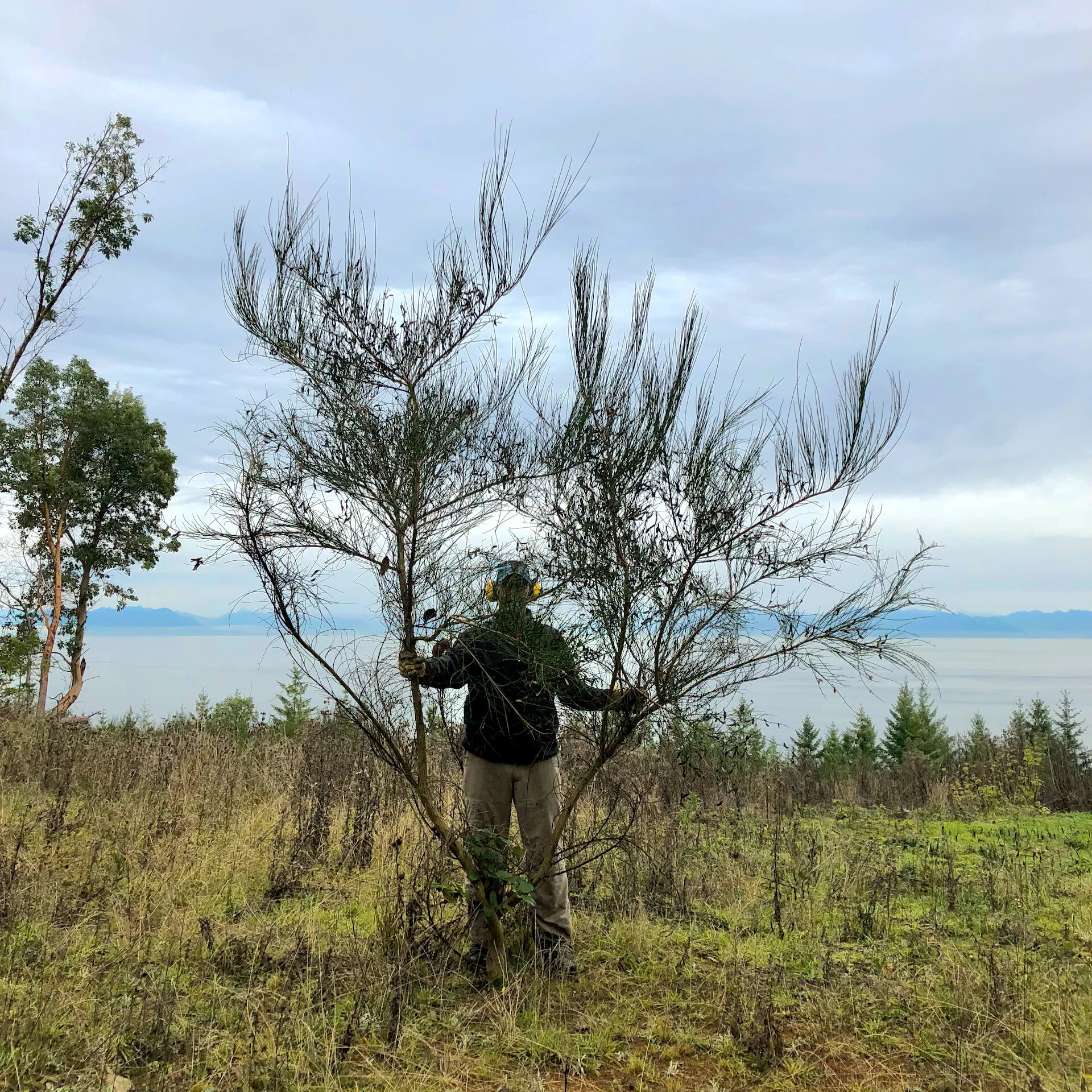 We hung out on the beach for a good couple of hours before reluctantly heading back up to the property. We didn’t have a ton of time, so we didn’t start up a fire this time. There will be many days for that to come. I spent the afternoon working on cutting up logs with the chainsaw, and made good progress on pulling out a fair number of downed trees. It felt like i made good progress. Justine continued to tackle broom. It was a very productive afternoon.
