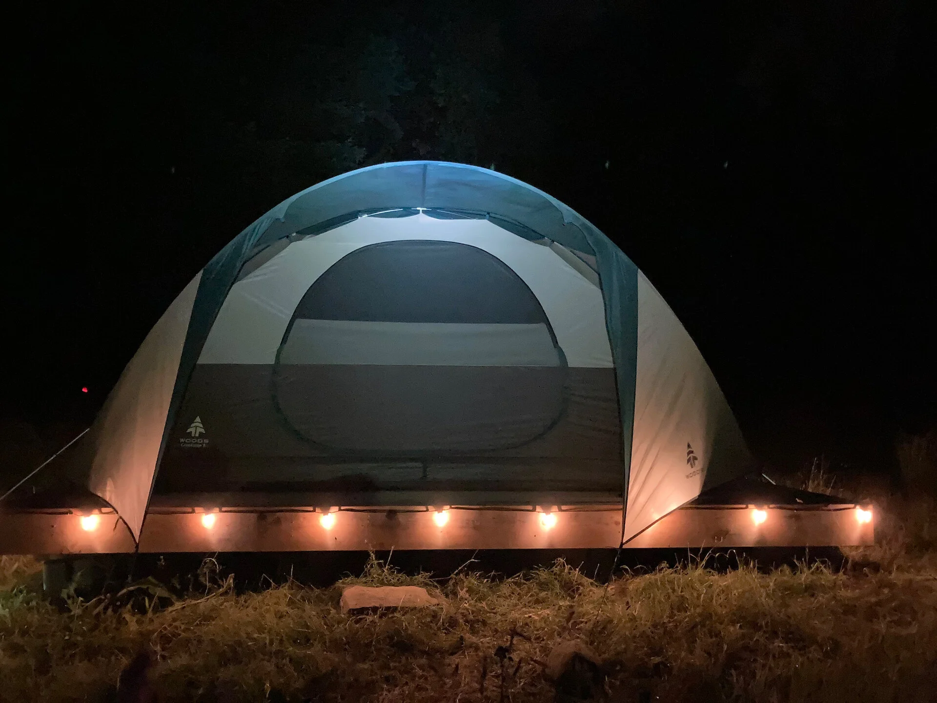The plan for the weekend was to try and tame the super-high grasses, nettles and thistles, as well as to finish off the outside of the new shed. Our neighbor had brought over some tools, so we held off on the shed until later in the day. We started with getting the grassland under control. Or trying to anyway. I broke out the brush cutter (started on the first pull!) and cleared ut around the tent platform, and started into the mass of thistle. We made some good progress, and after needing a break from the brush cutter, we set-up a new set of solar lights around the platform.