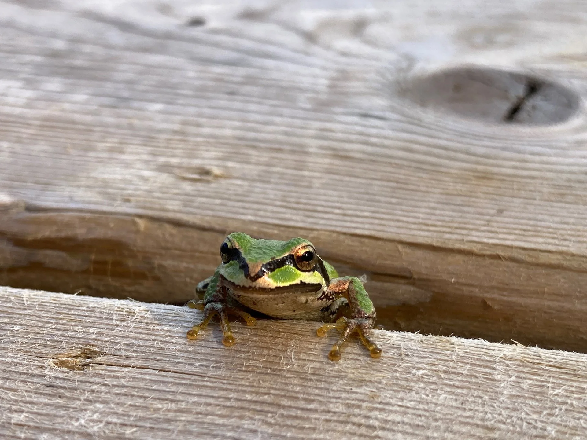 We always hear the tree frogs around the cottage. But we rarely see them. On one day, we had this little guy crawl out from under the deck.
