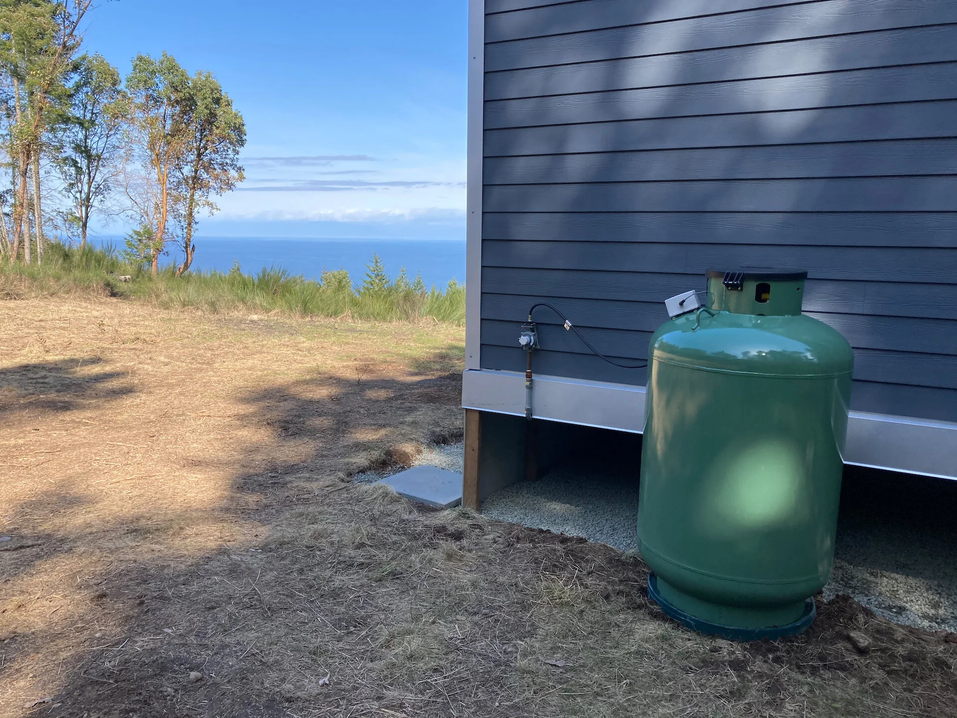 The propane guy showed up late morning and installed our new propane tank. It’s a big one, but I hope that means we don’t need fills more than once a year. We’ll see how much we use. Unfortunately, the tank comes empty and the propane fill wasn’t schedule to come until the next day. The installer was kind enough to empty our regular propane tank into the big one, and finally we had hot water!