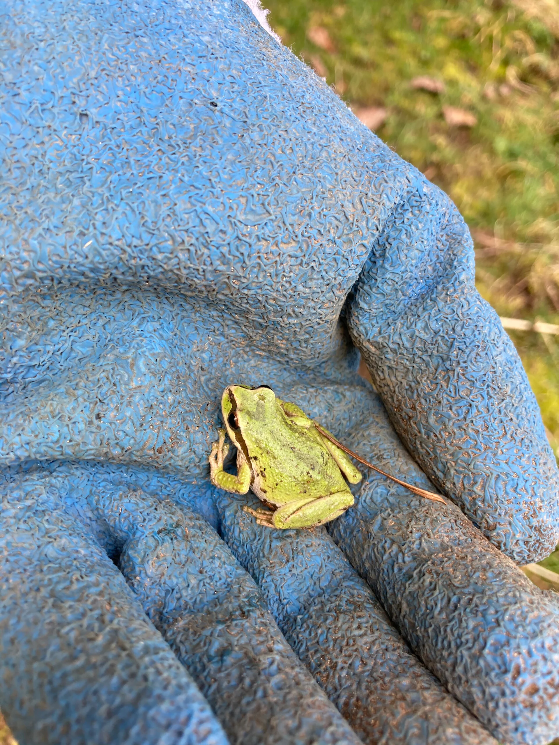 While we were working on the raspberries, Justine found this little guy - a Pacific Chorus Frog