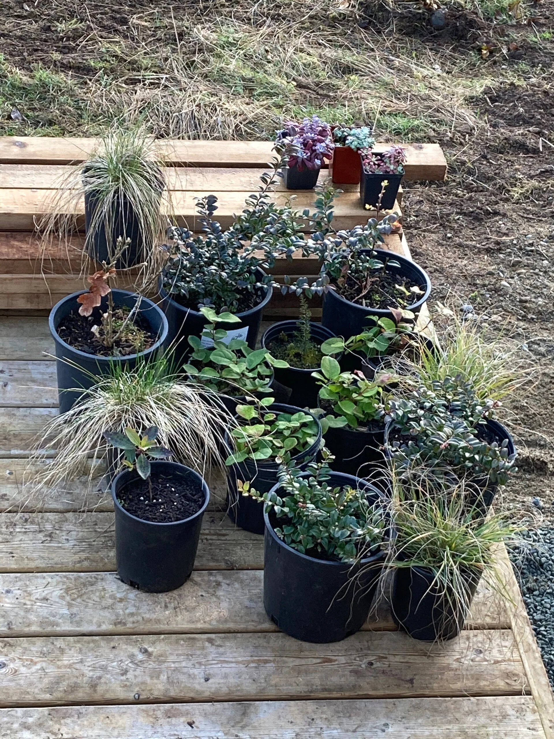 After getting home, we planted all the plants that we had picked up the day before. We’re hoping that some of the native shrubs will start to replace the broom that we’re removing from the property. We’ll see how that goes…