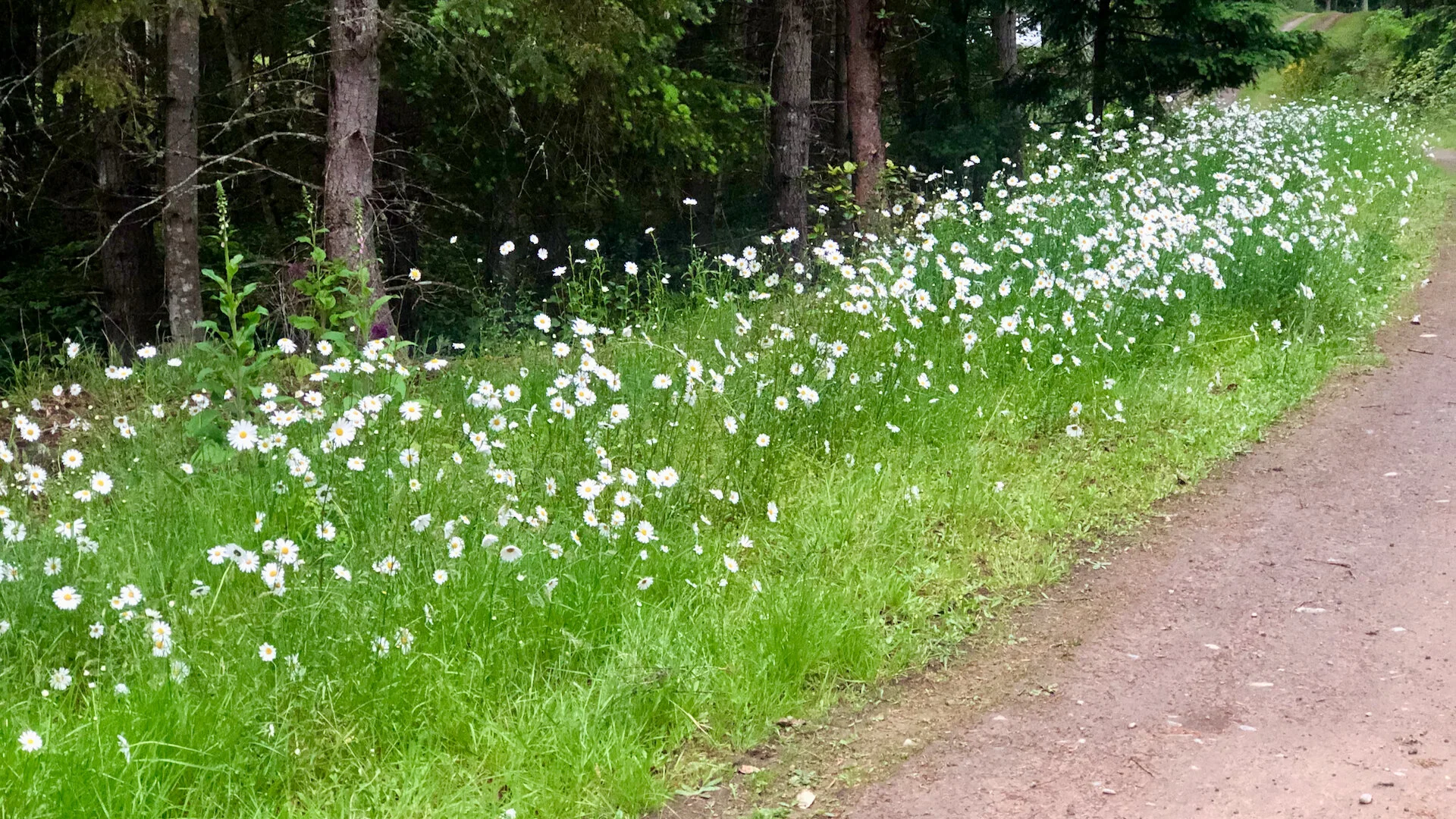 The edge of our property along the lane has daisies in full bloom.