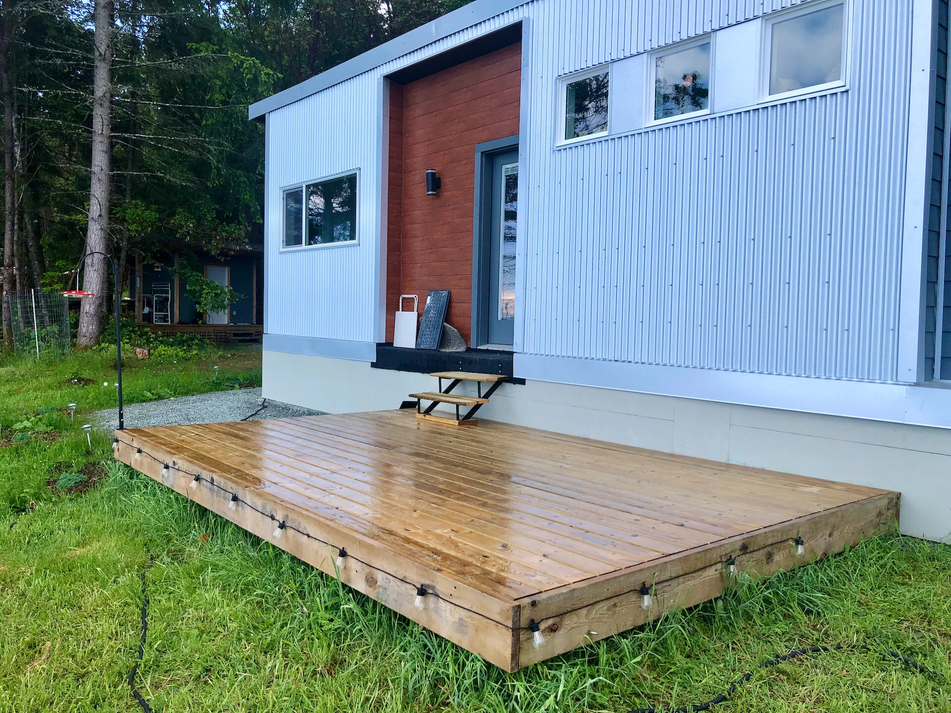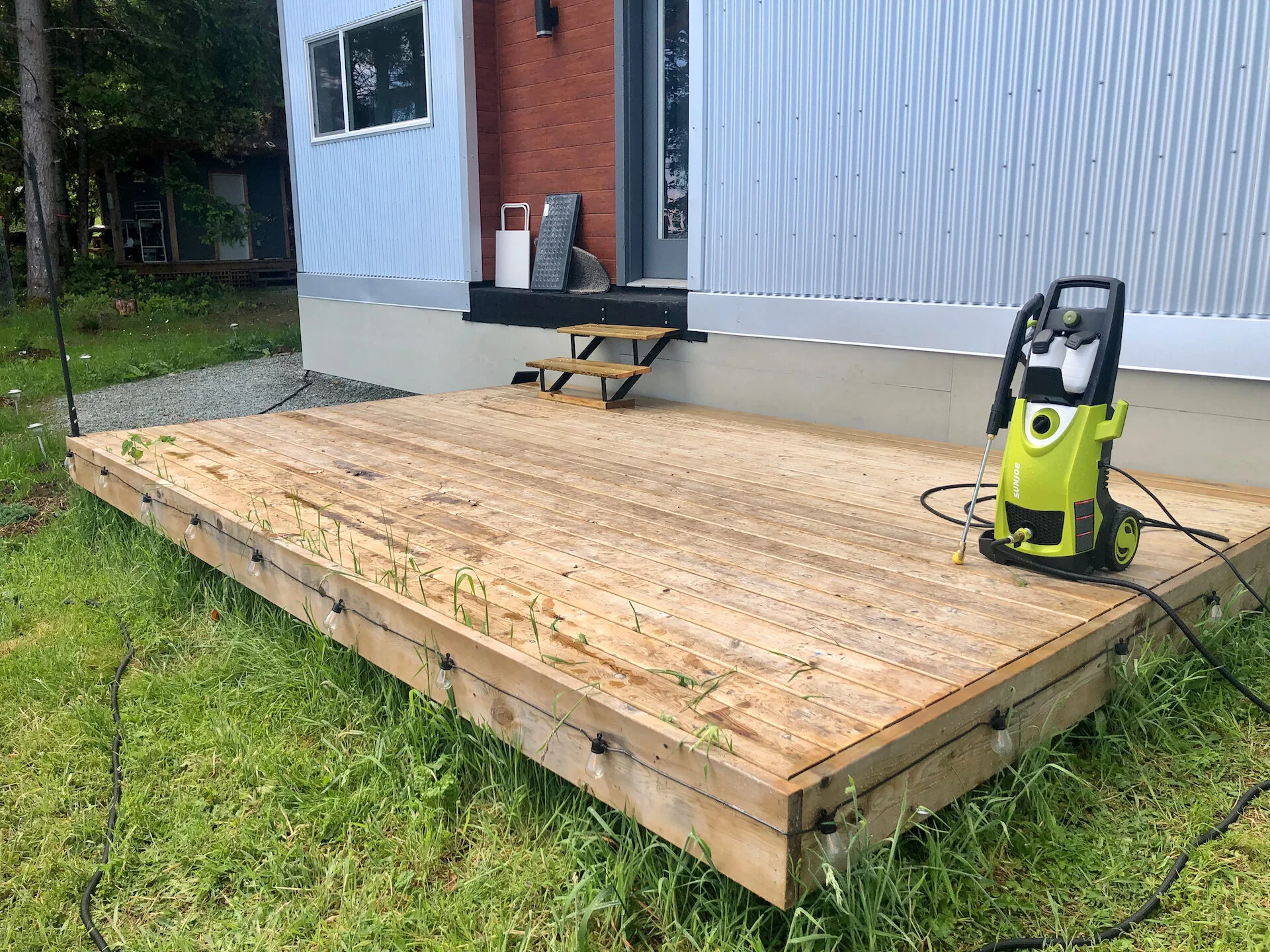 Since I had the pressure washer going, I also cleaned up the deck out front of the cottage, as well as the one around the shed. It freshened everything up, and provided a reason for me to also tackle consolidating the various piles of wood we have sitting around into one spot, back behind the shed. What a difference!