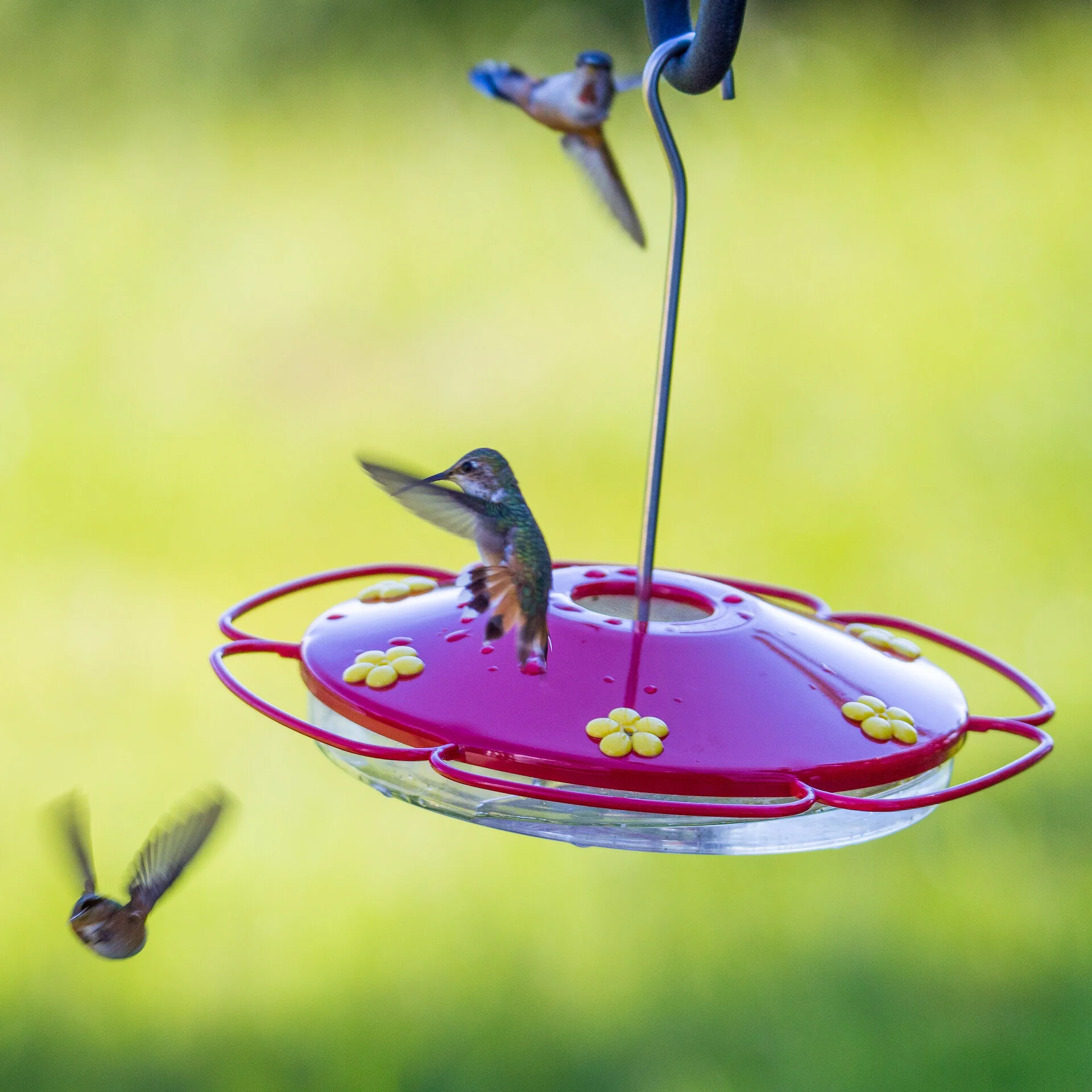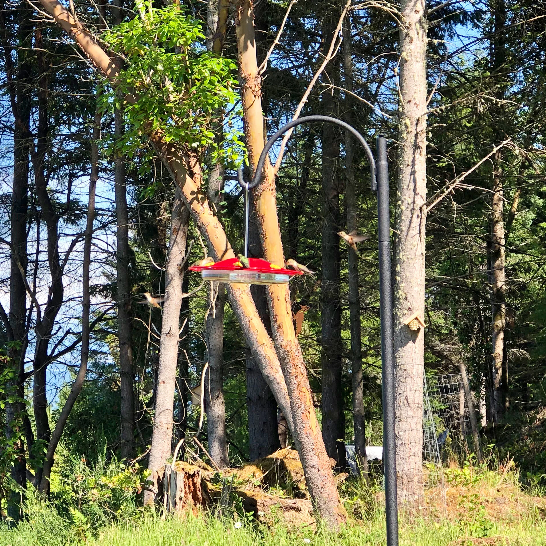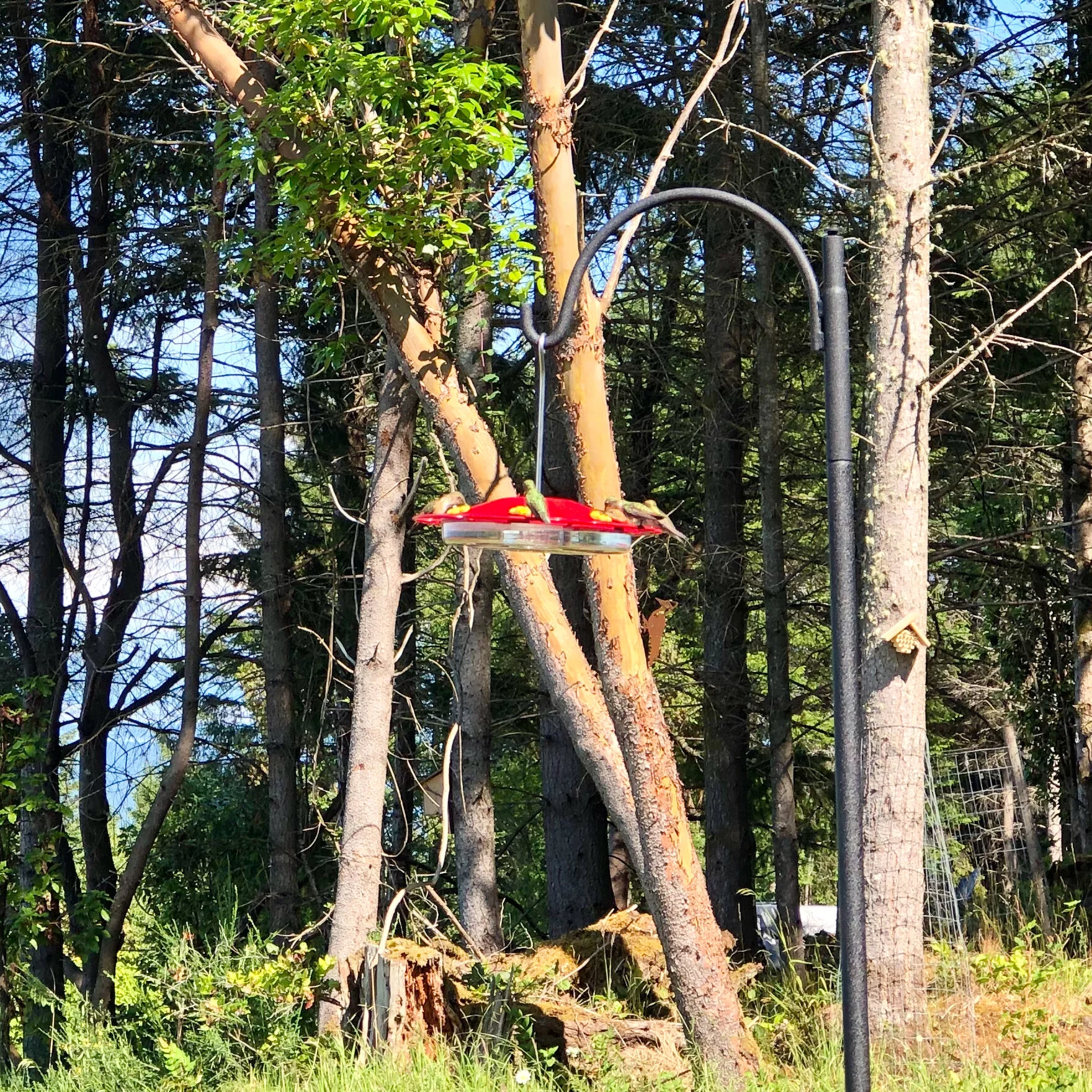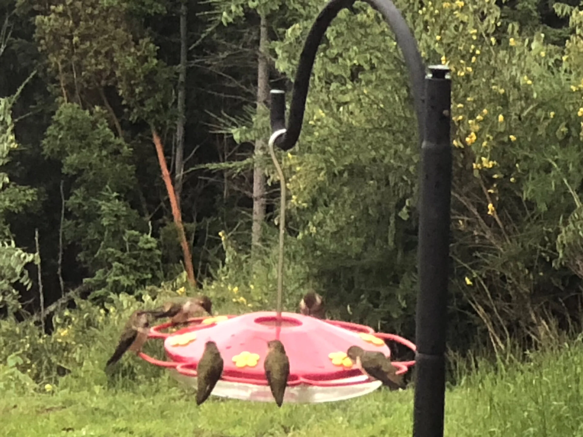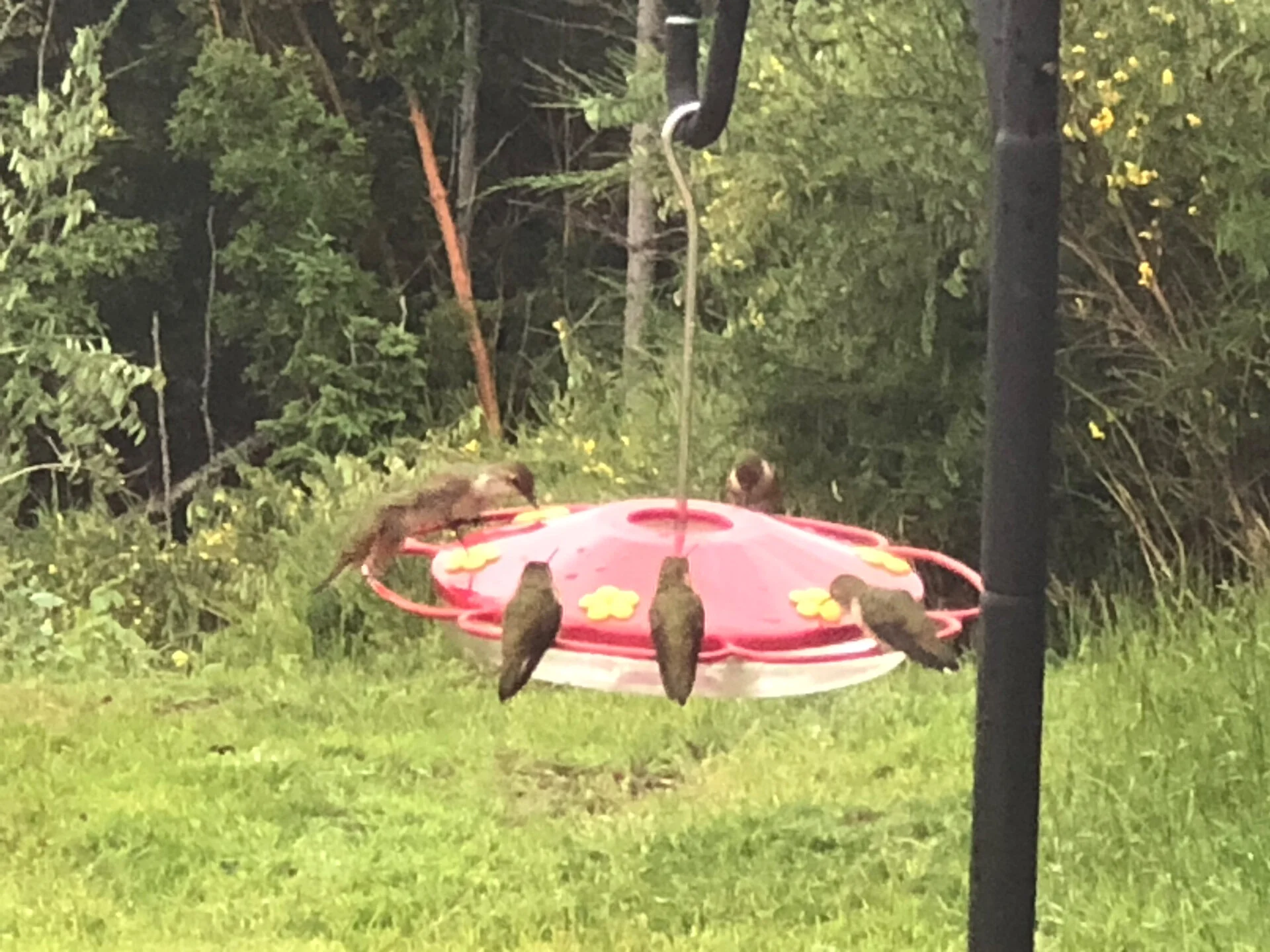 I think I mentioned in a previous post that we had put up a new hummingbird feeder, to great effect. This week the juvenile rufous hummingbirds kept me busy - they were draining the feeder in a day! I counted 9 at one time - but is was constantly 5-6 little birds all battling it out.