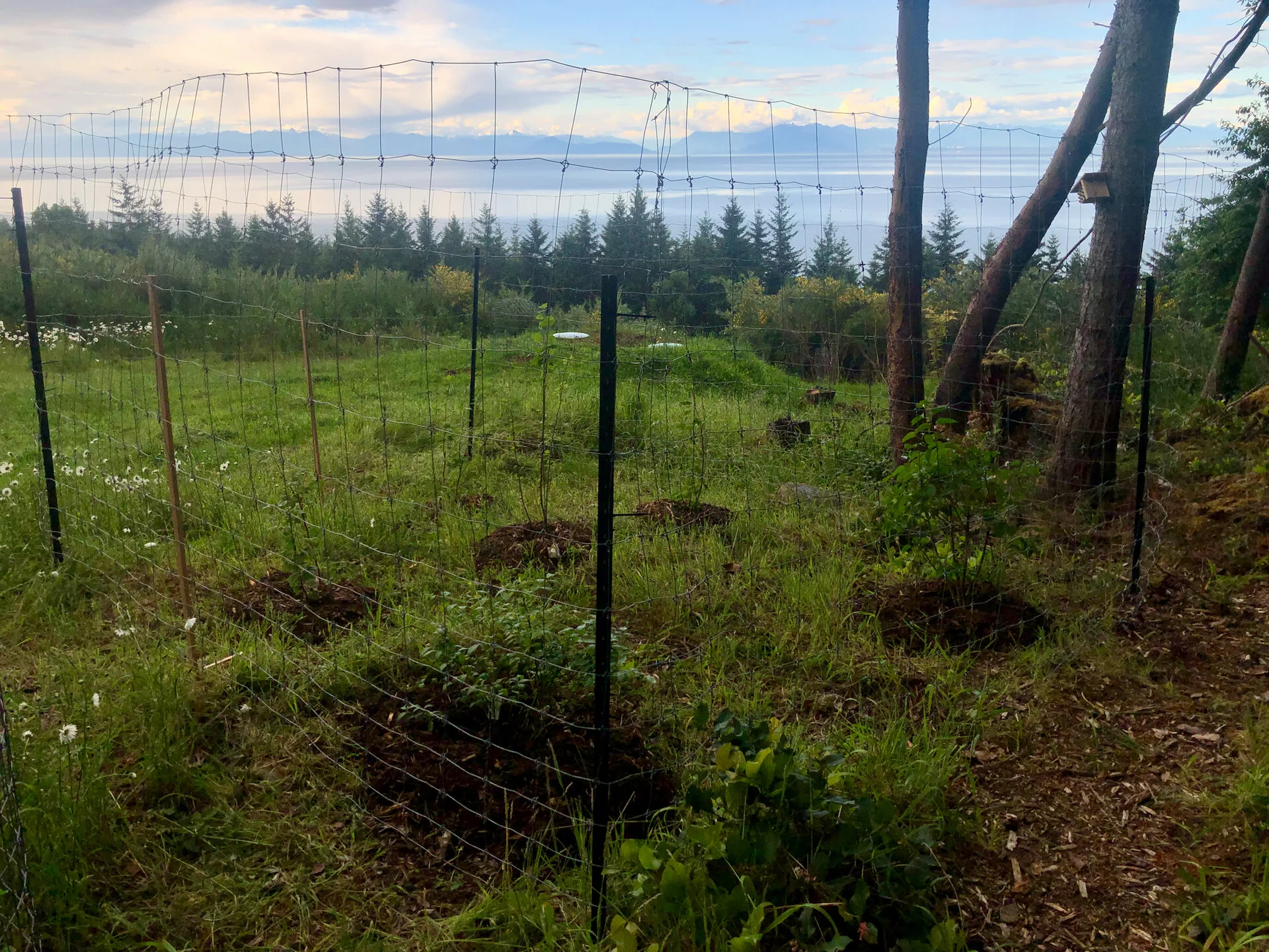 Earlier in the spring we had planted a number of flowering current bushes. They are supposed to be “deer resistant”, so we didn’t fence them initially. Sadly, the deer browsed them pretty hard, so one of my other project was to fence them. I had decided to do a fairly large area, and also enclosed one of the blueberry bushes and the lilac inot one big enclosure.