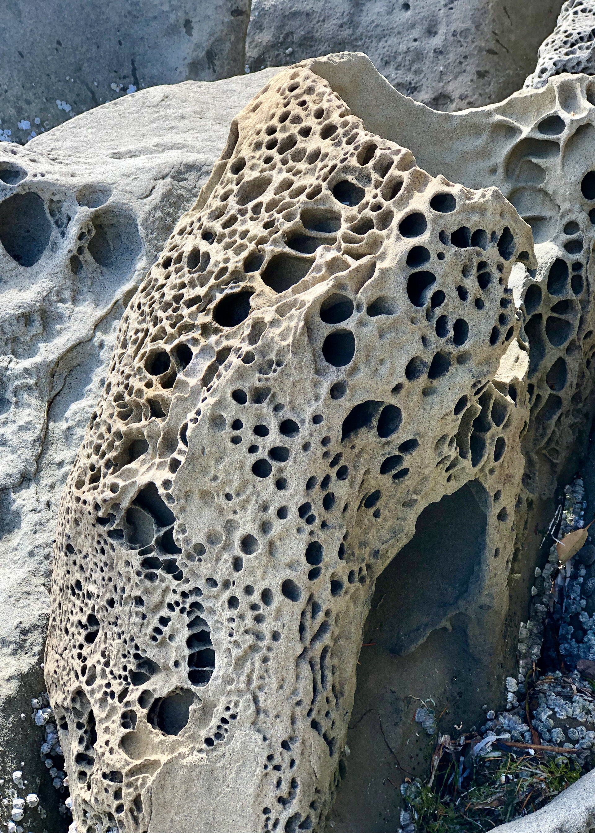 As you get around the far side of the walk, there’s an area where you can get down to the water, and there are some interesting sandstone formations, carved by the water.