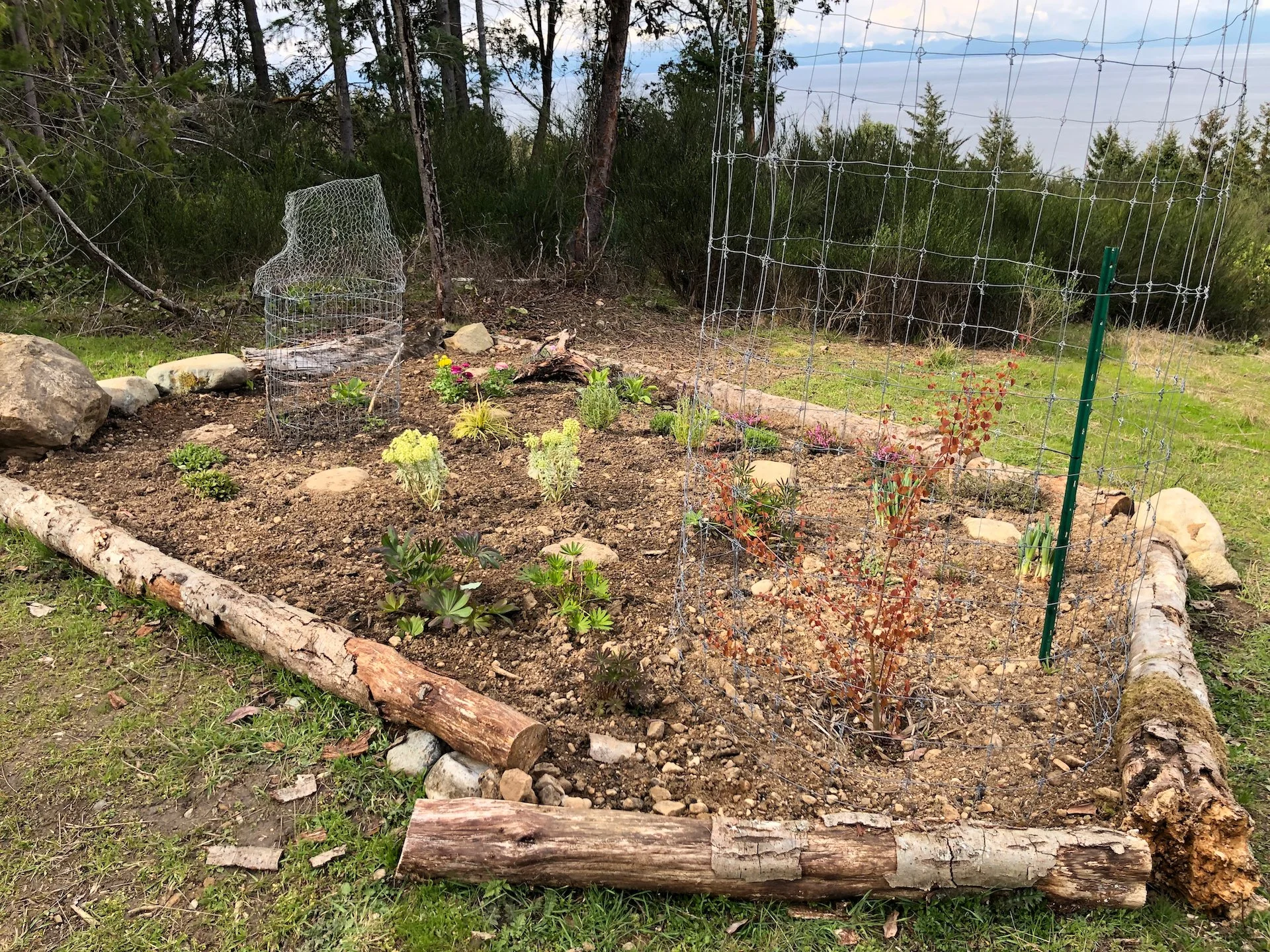 We still have more work to do. Where we cut into the ground, we want to build a small retaining wall with all the rocks we pulled out of the ground. There are a lot of them around (you can see some off to the right), so we won’t be short on materials. A project for a later visit.
