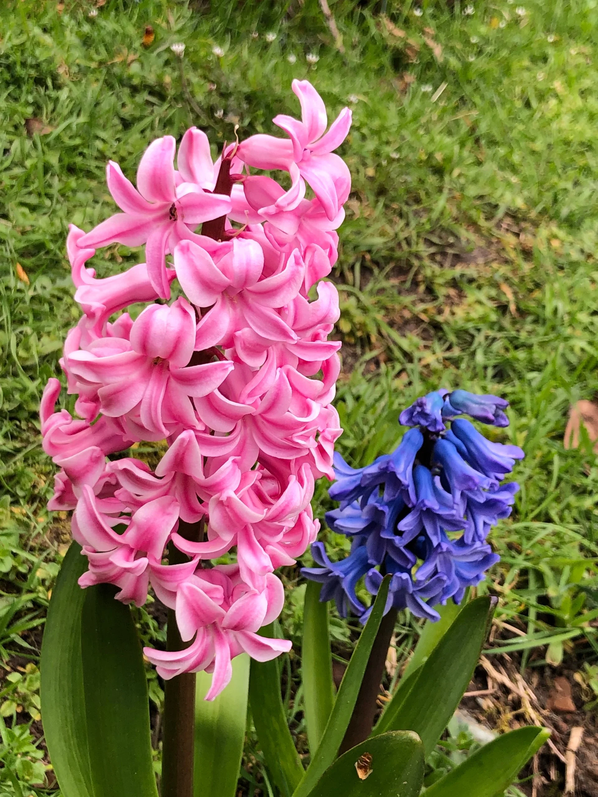 Every visit we’re excited to see what’s blooming as the weather warms up. It feels really late this year. Our daffodils are pretty much done, but the hyacinths are beautiful right now. We don’t have any tulips (deer…).