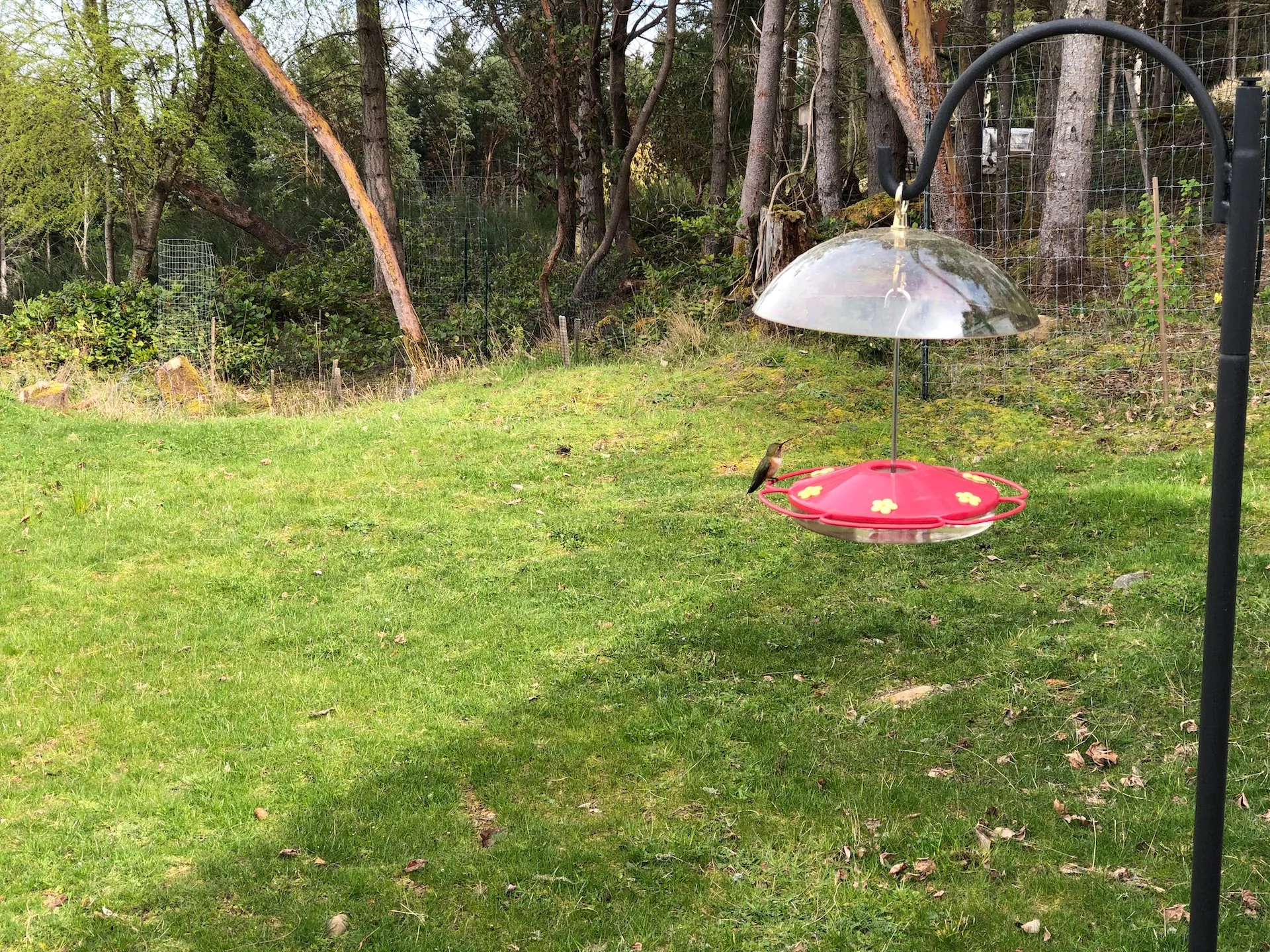 The hummingbirds are getting more and more entertaining. We’ve got Anna’s and Rufous, both male and females. The male rufous seems to be the boss, buth there has to be half a dozen in total in our area. They’re going through a lot of food!