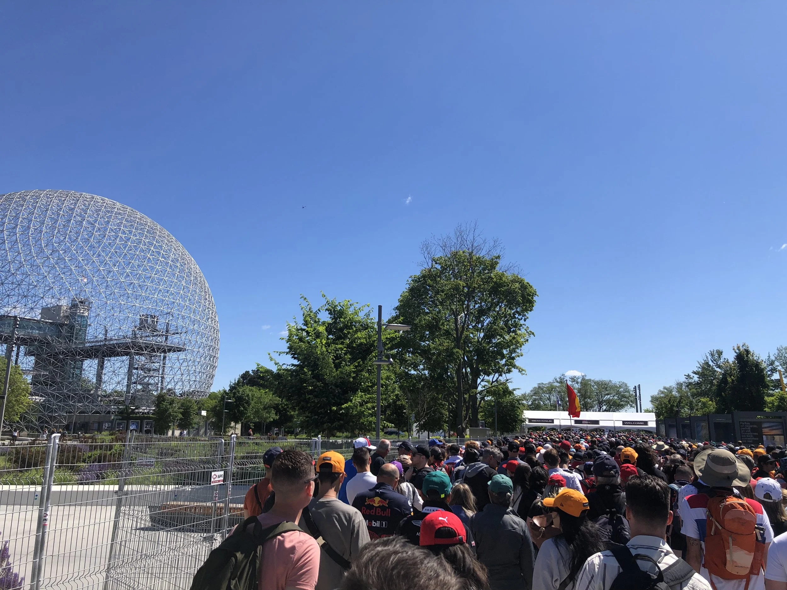 The next morning we had a leisurely start, not rushing but wanted to get out reasonably early. Thursday was the pit lane walk, and was open from 9-noon. We had done something similar in Abu Dhabi, but that experience was much different from this one! In Abu Dhabi, the pit lane walk was limited to people with tickets to the whole weekend, so it limited the crowds. Montreal takes a different approach and opens it to the public, no tickets needed. We were not aware of that going in, or we would have left a lot earlier…