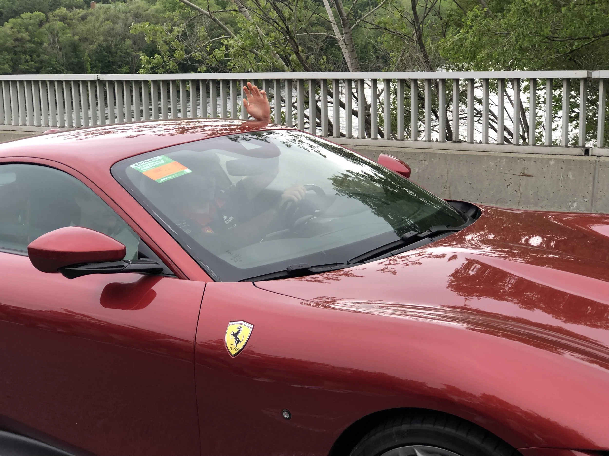 Carlos Sainz in his Ferrari, driving into the grounds.