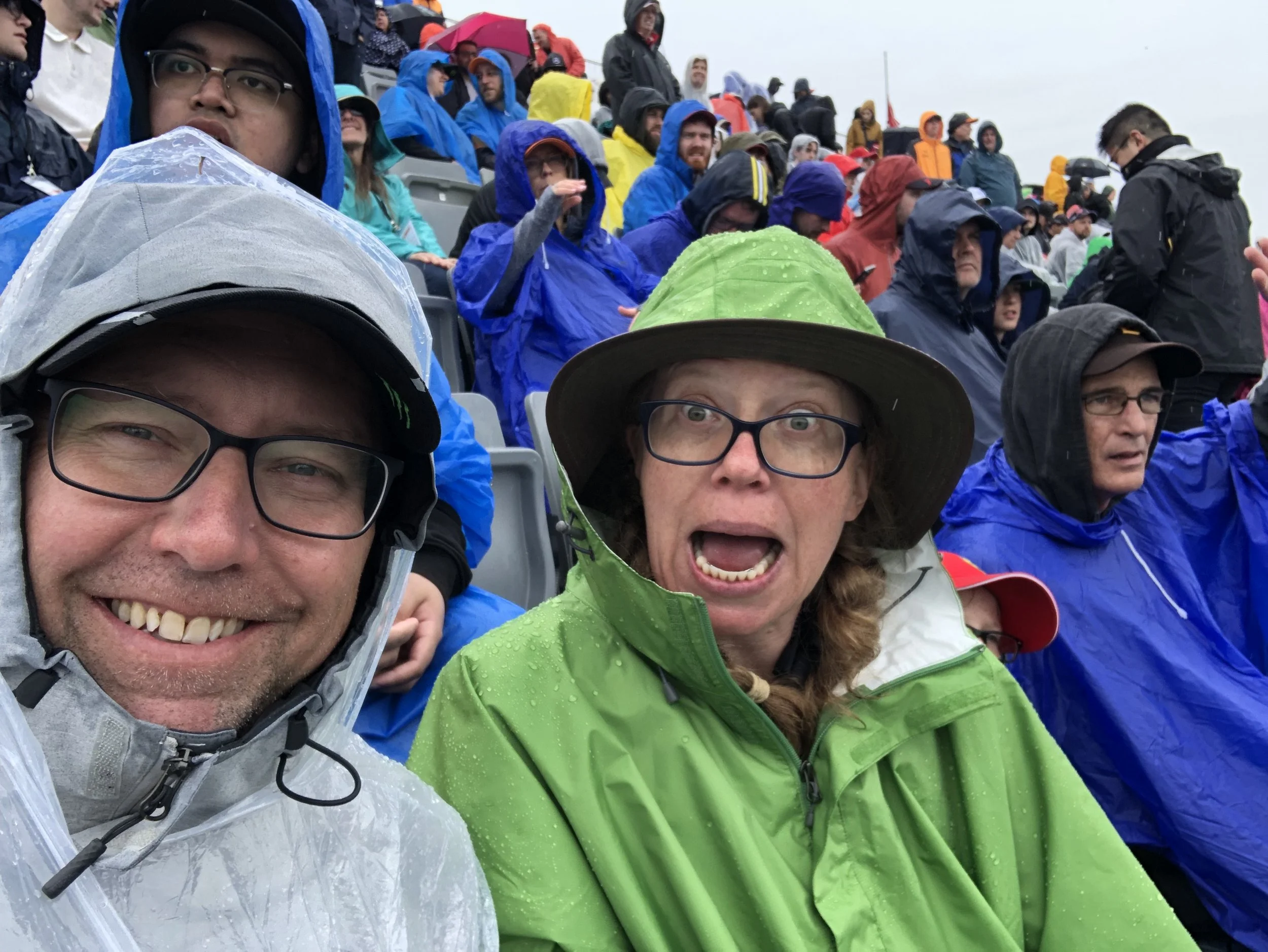 Saturday was qualifying day, but sadly the rain from the night before stuck around all day. We headed to the track a little bit later, but still it was generally not a nice day sitting in the rain. I had thought our bleachers were covered when I bought the seats, but clearly not. Throughout the weekend we had good neighbors - the two guys next to us (Kasey and Dawson) were also from Vancouver and were a lot of fun. We definitely owe them some beer…