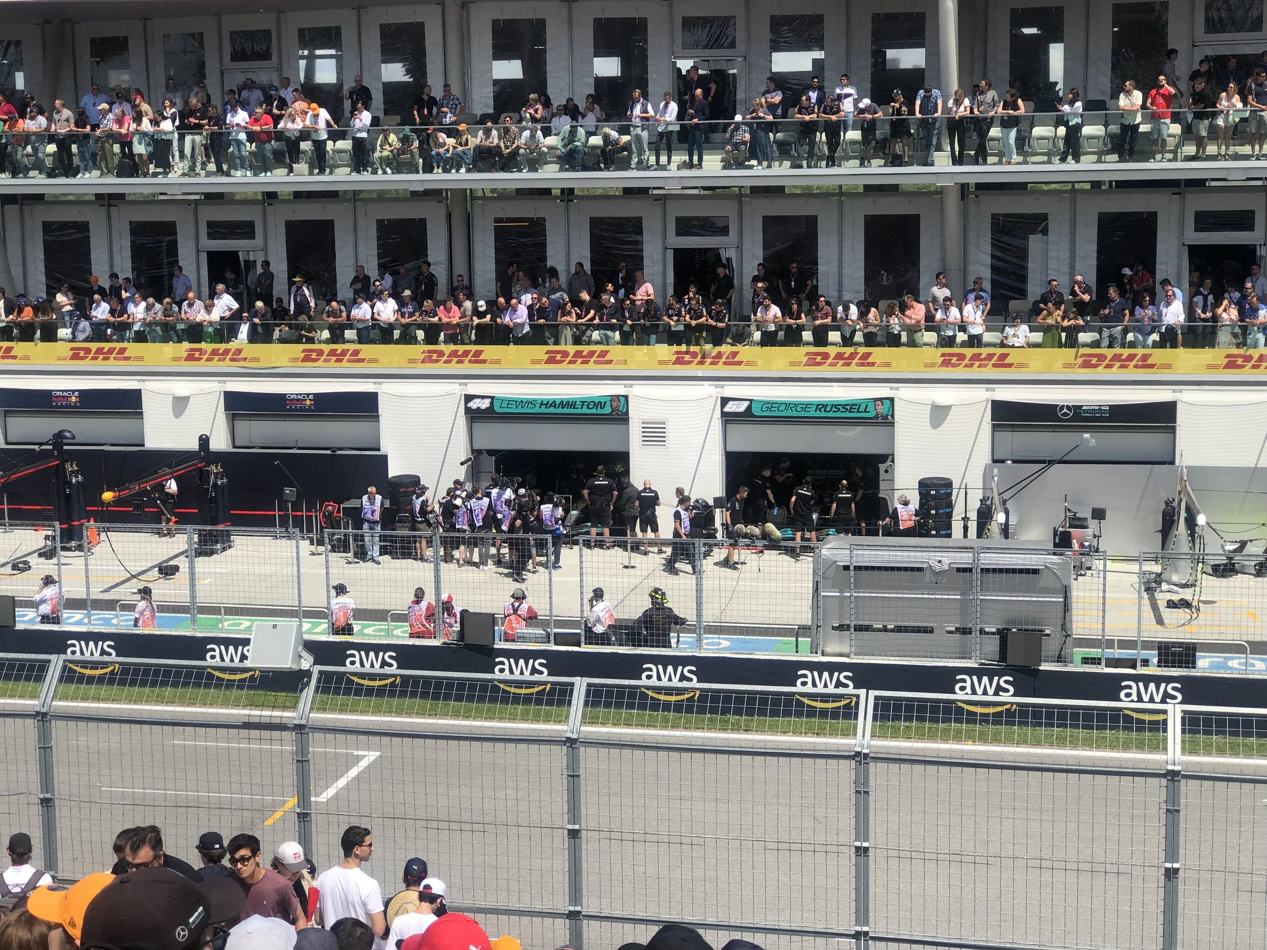 We spent a while in our seats watching some of the support races, then we wandered around the grounds for a while, checking things out. We grabbed some lunch and headed back for the first F1 practice session. Our seats were interesting in that we had a great view into the pits, especially the Mercedes garage. Also Red Bull, the others not so much. But we could see them working on the cars, changing tires and all the activity going on. It was pretty cool.