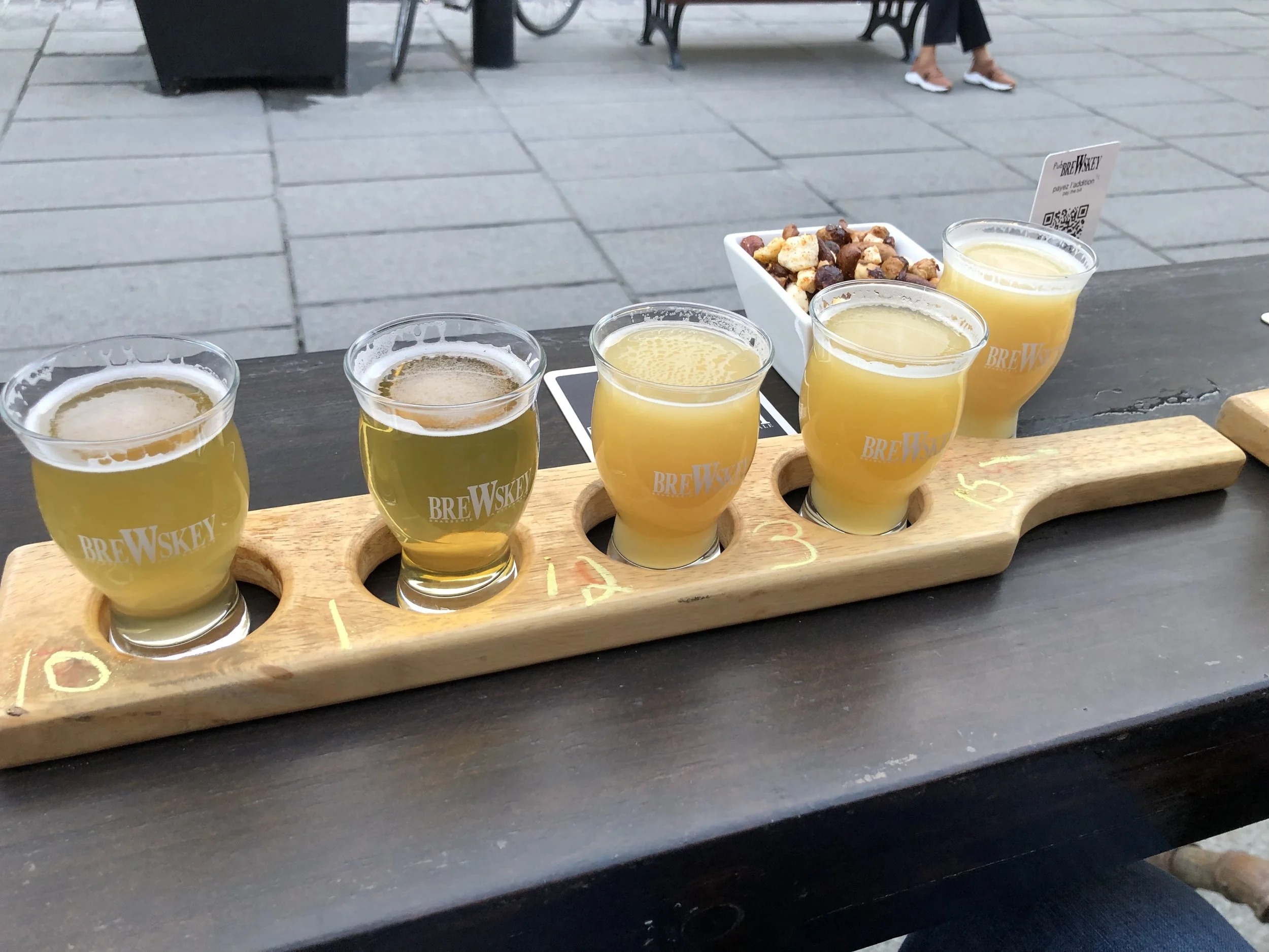 We worked our way back and stopped at a brewery that we had found in the old town, and sat on the patio and had a drink. I had a flight of good beers, and we enjoyed the evening as the sun went down.