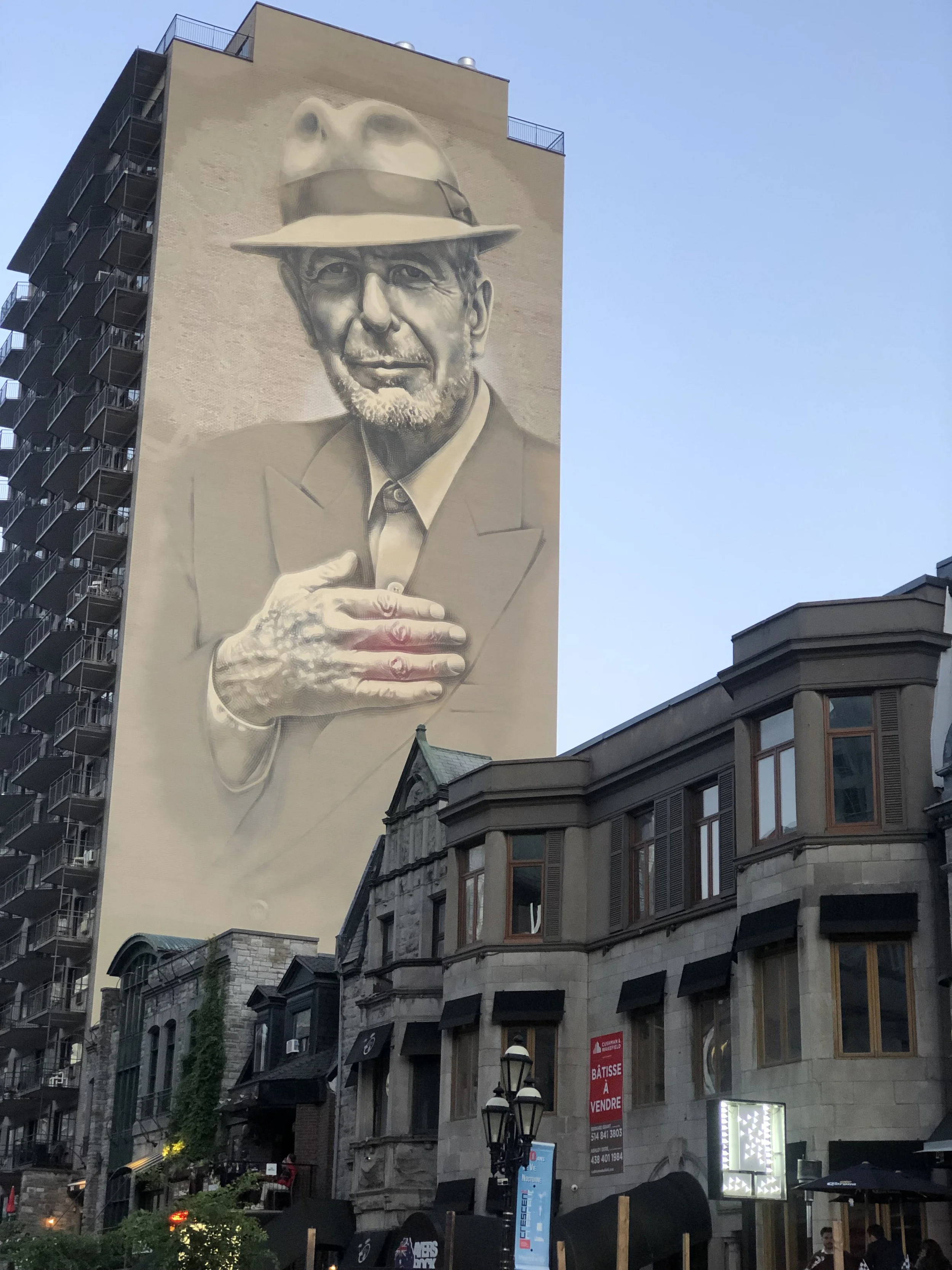 A very col portrait of Leonard Cohen on one of the buildings on Crescent Street.