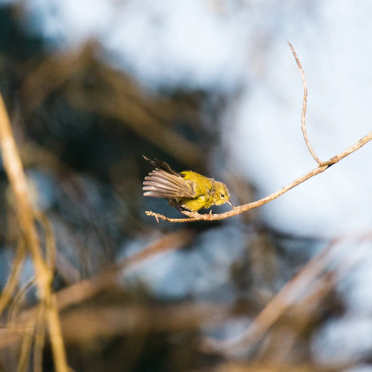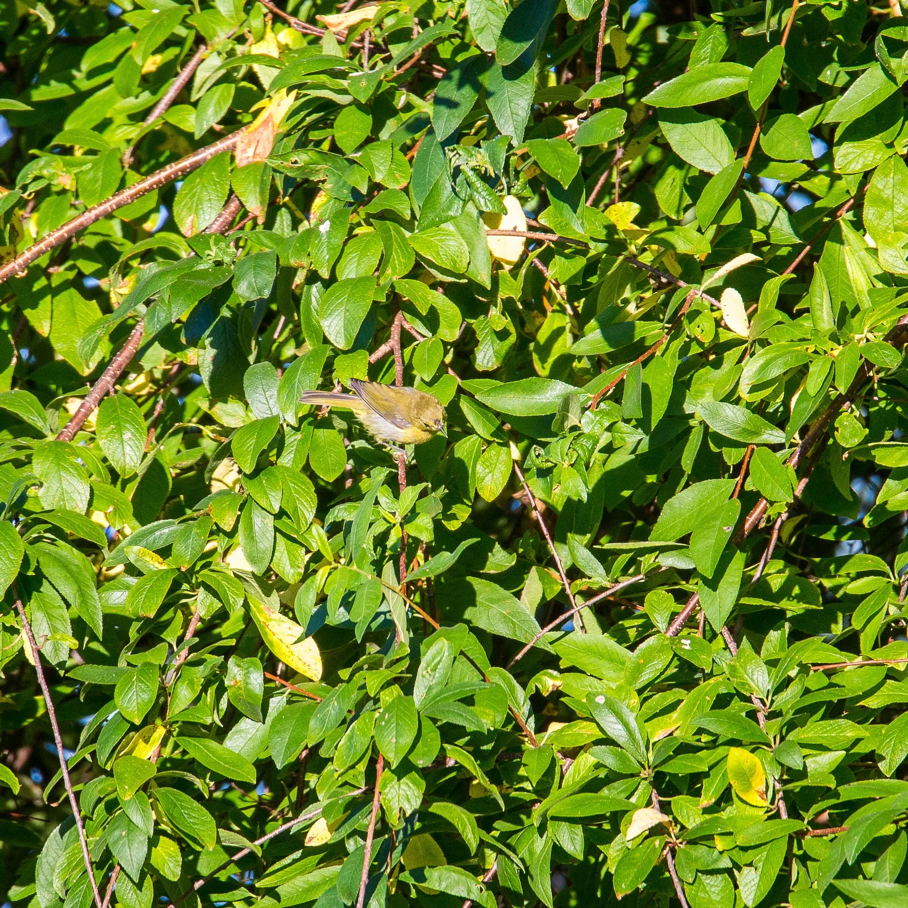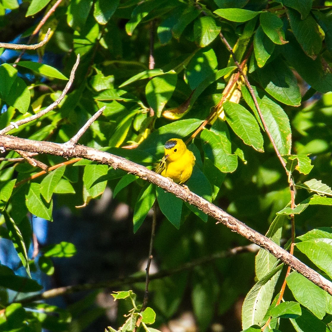 One of the more interesting things that has gone on this summer is that we have had a whole family of Wilson’s warblers living in the cherry tree at the edge of the forest. They seem to spend most of the day flitting about in the dense foliage. They disappear somewhere else at night. It’s been hard to get an exact count, but there must be 10-12 of them. There are juveniles (the less colourful ones) and the full yellow adults.
